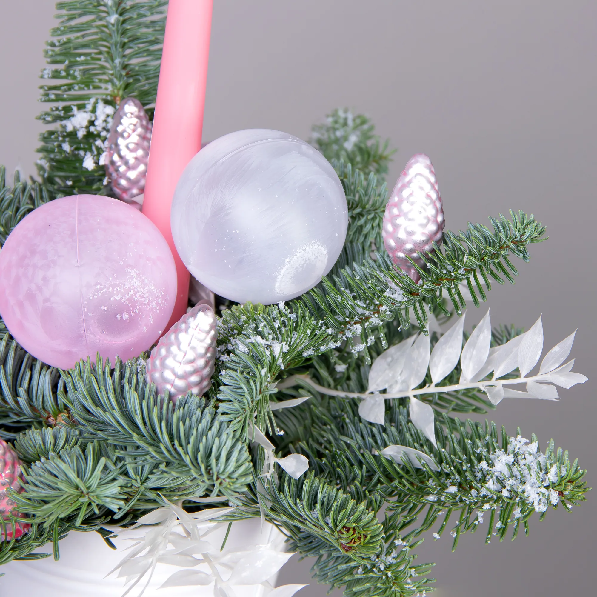 Всё это создает атмосферу радости и праздника, композиция наполнит дом ароматом живой ели и станет прекрасным украшением для вашего дома в новогодние праздники.