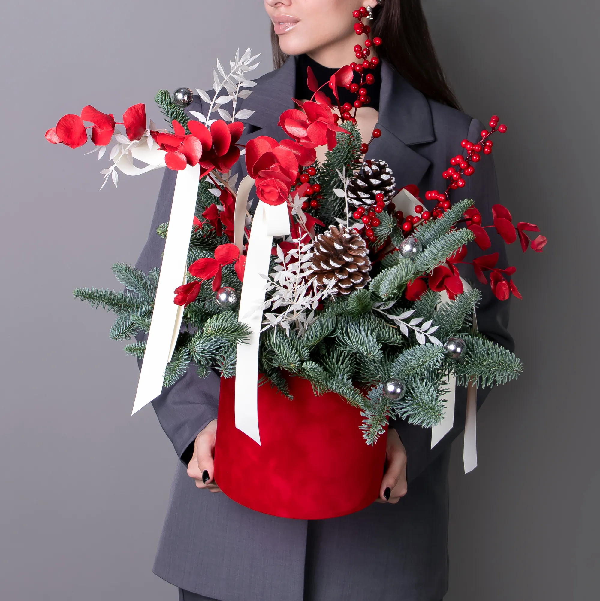 Цветы в составе данной композиции могу меняться, в зависимости от сезонности и задумки флориста-дизайнера.
