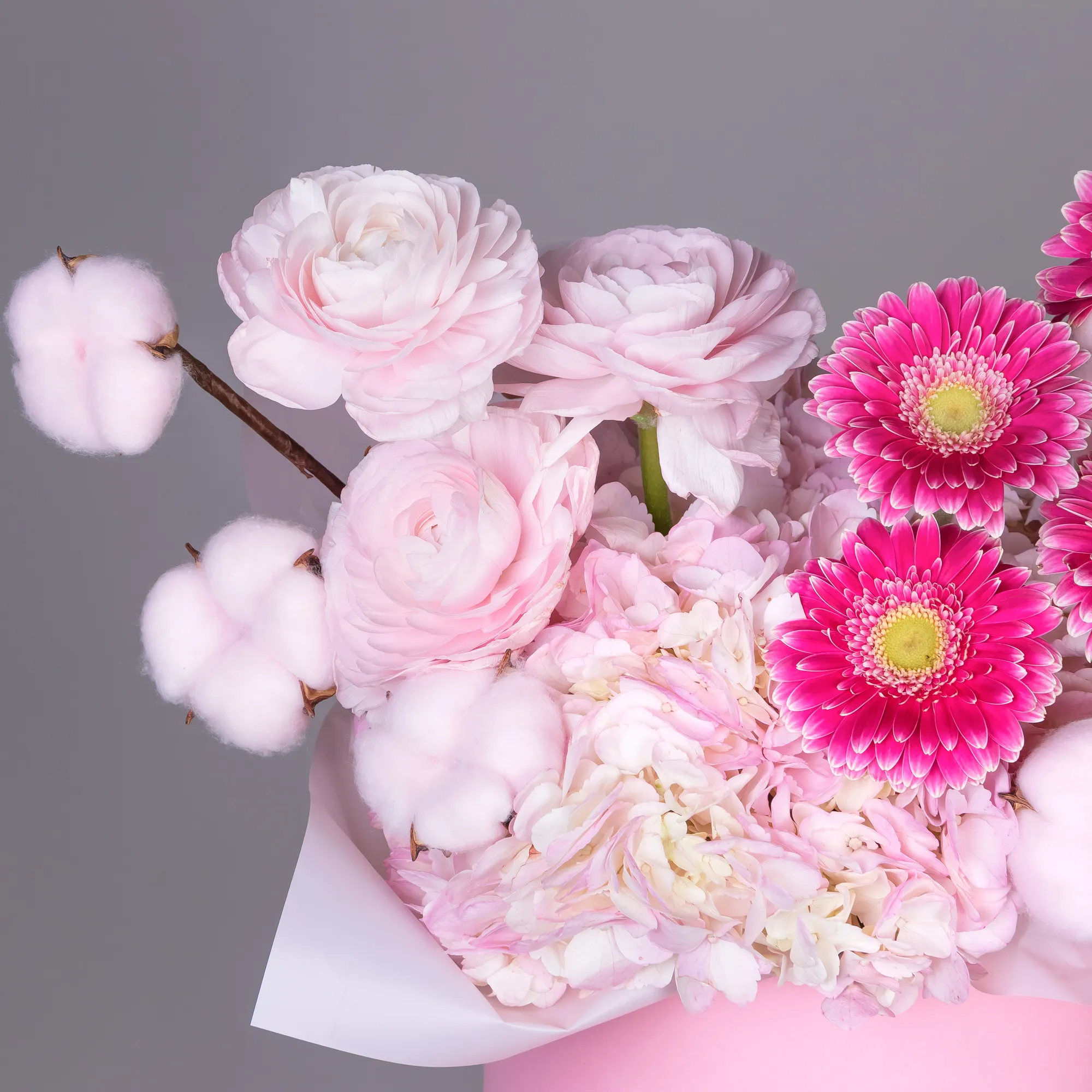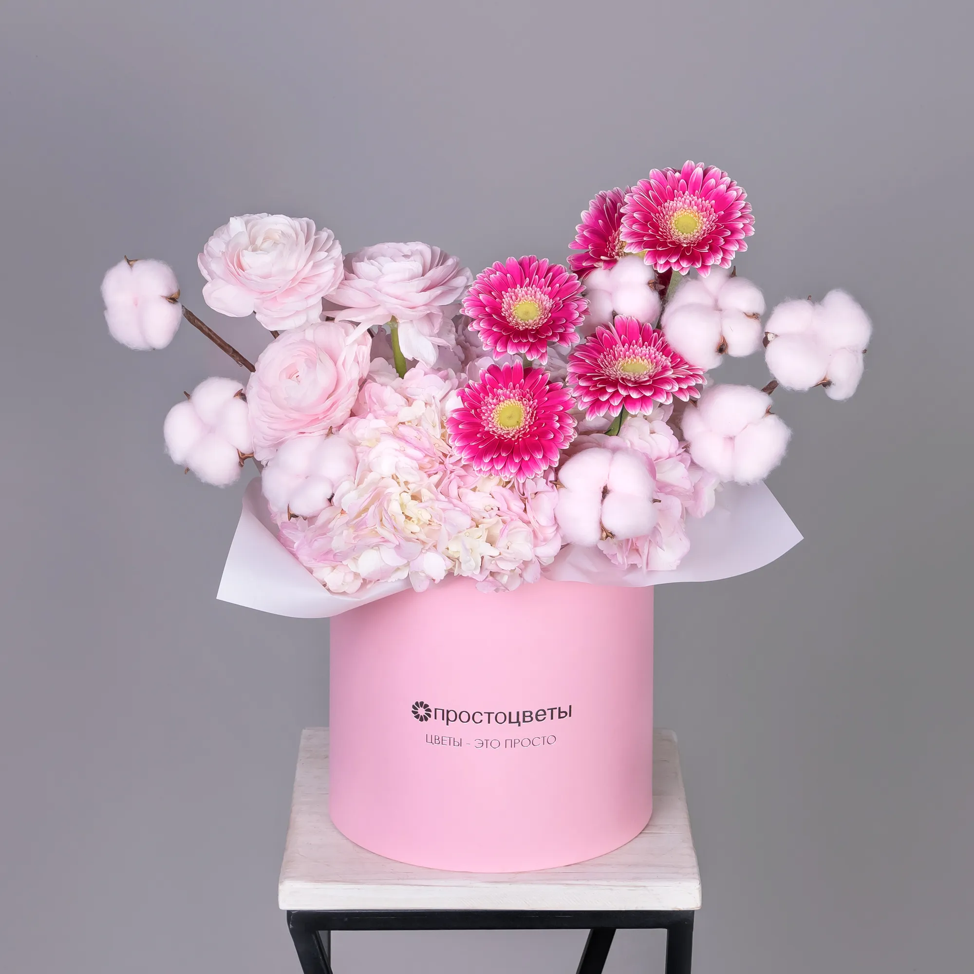 Цветы в составе данной композиции могу меняться, в зависимости от сезонности и задумки флориста-дизайнера.