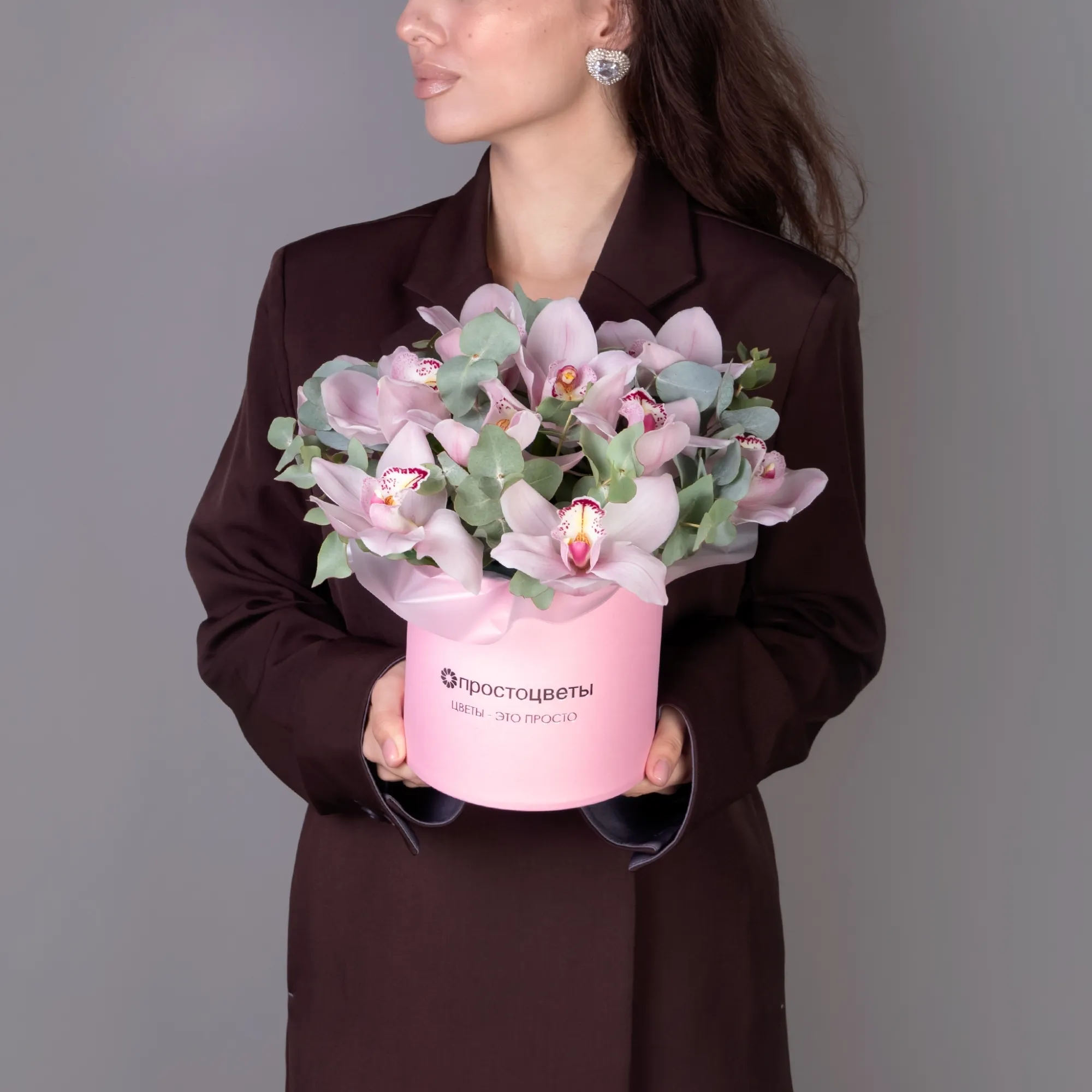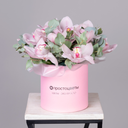 Композиция Композиция "Розовые орхидеи с эвкалиптом"
