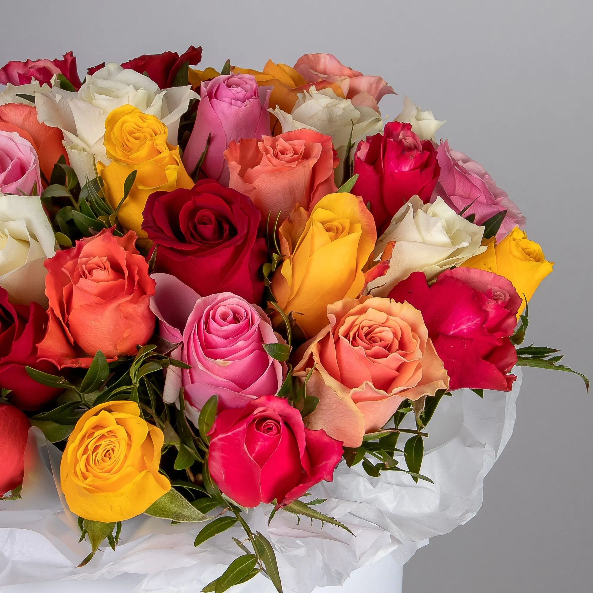 Композиция Шляпная коробка из разноцветных роз L