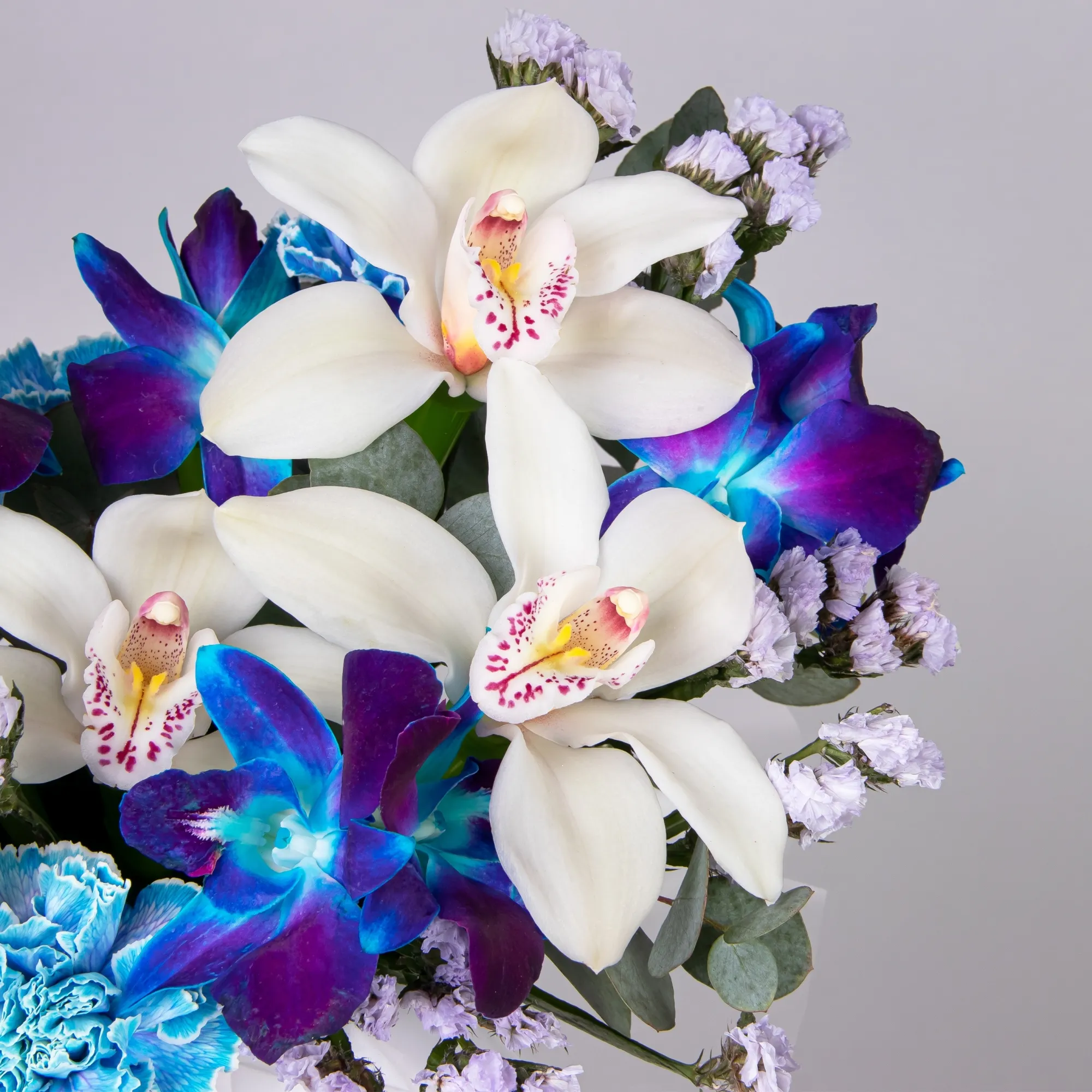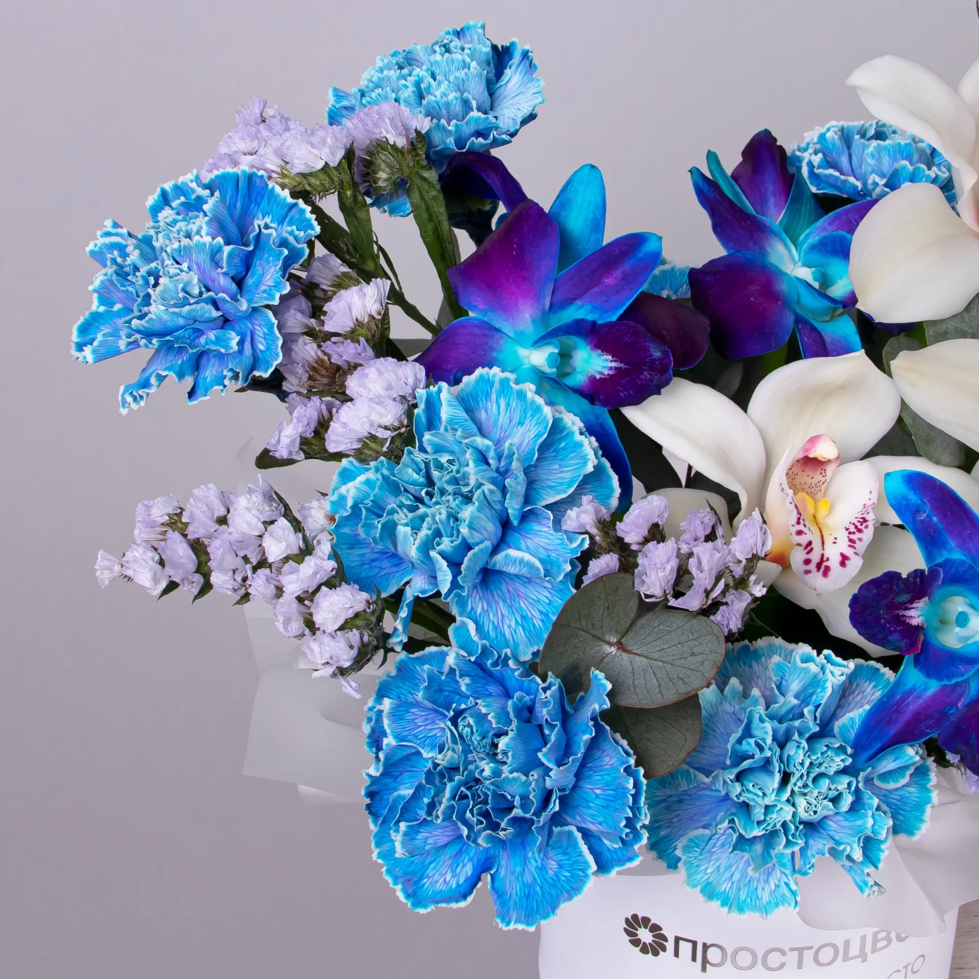 Орхидея, Гвоздика, Листья эвкалипта