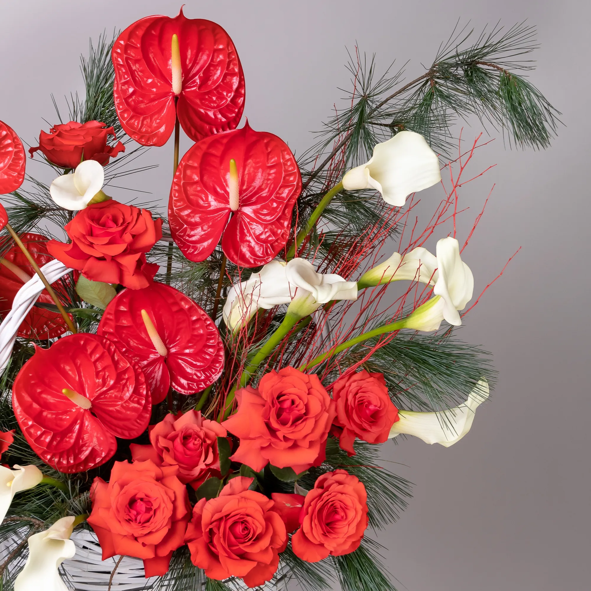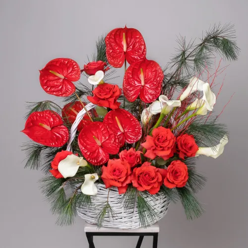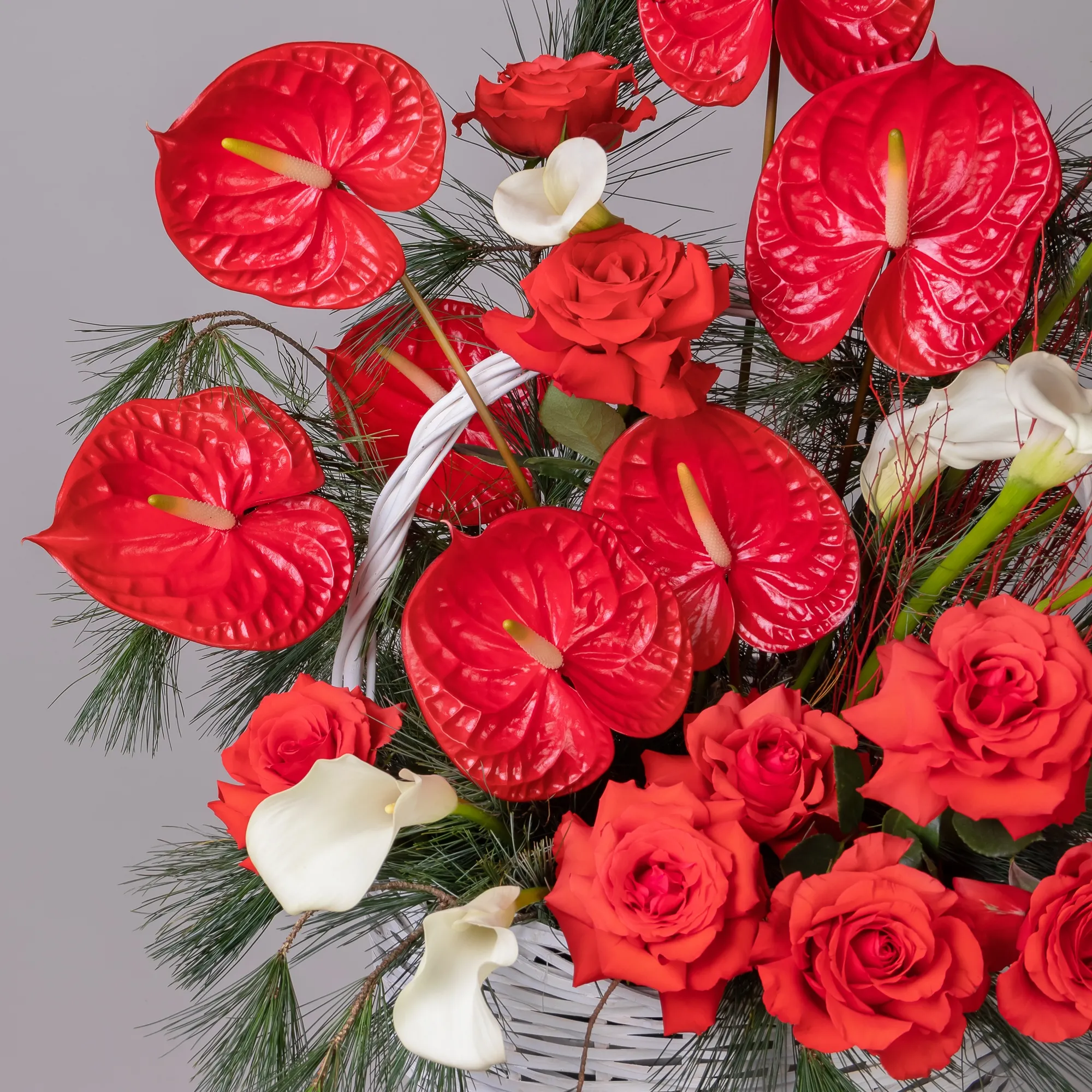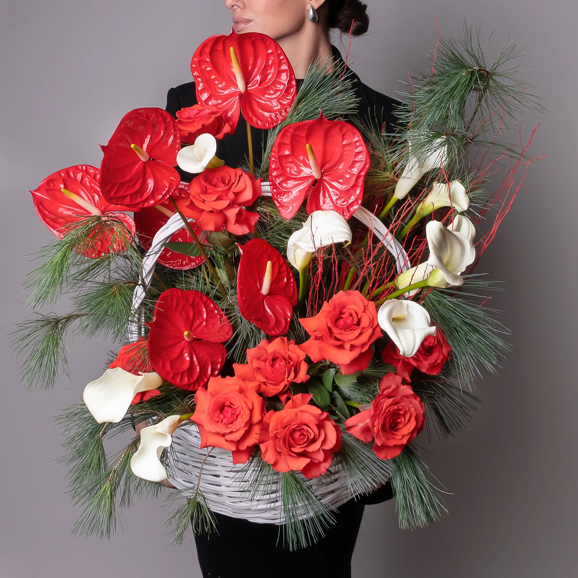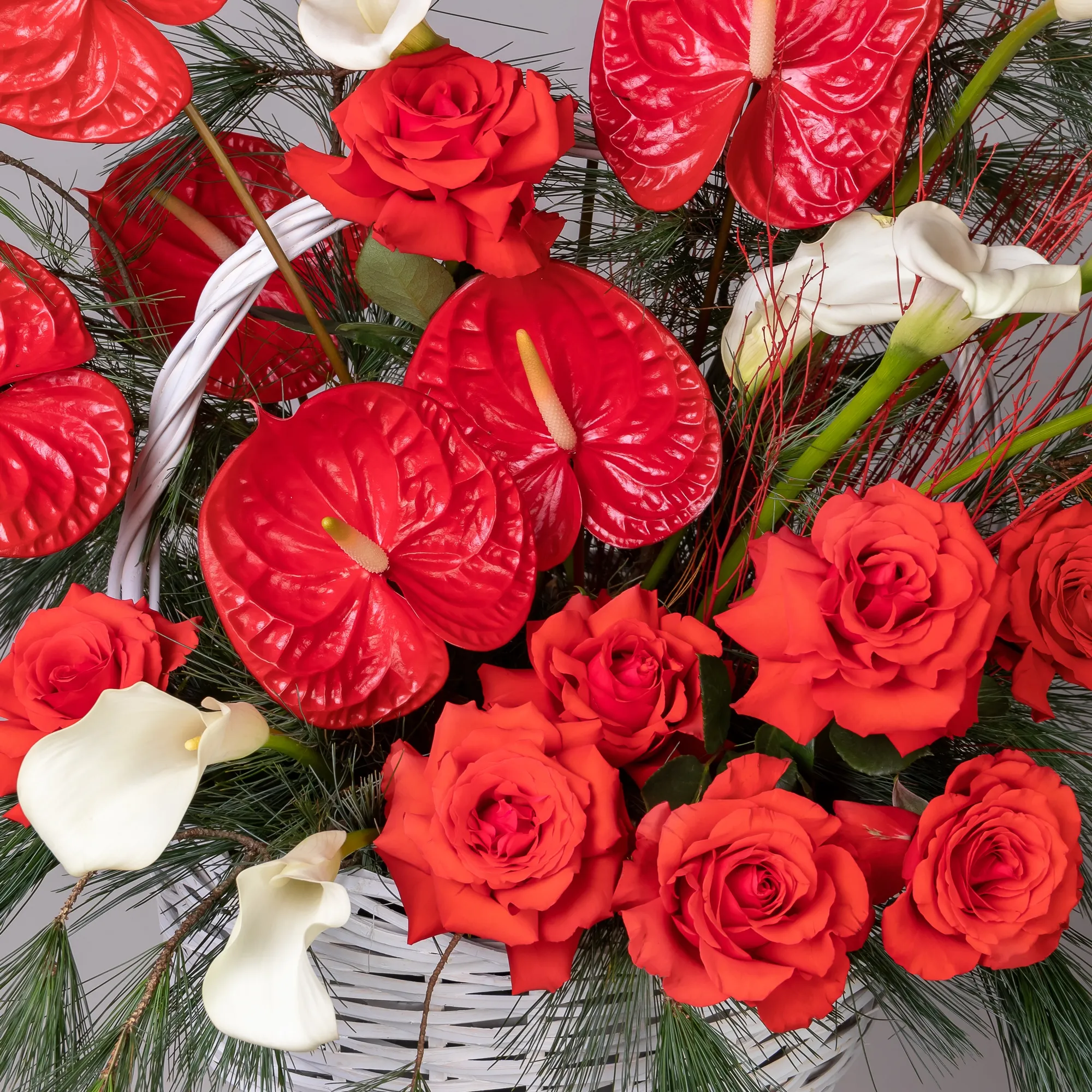 Роза-9, Антуриум-7, Калла-9, Ветки сосны-7, Ветки березы-5