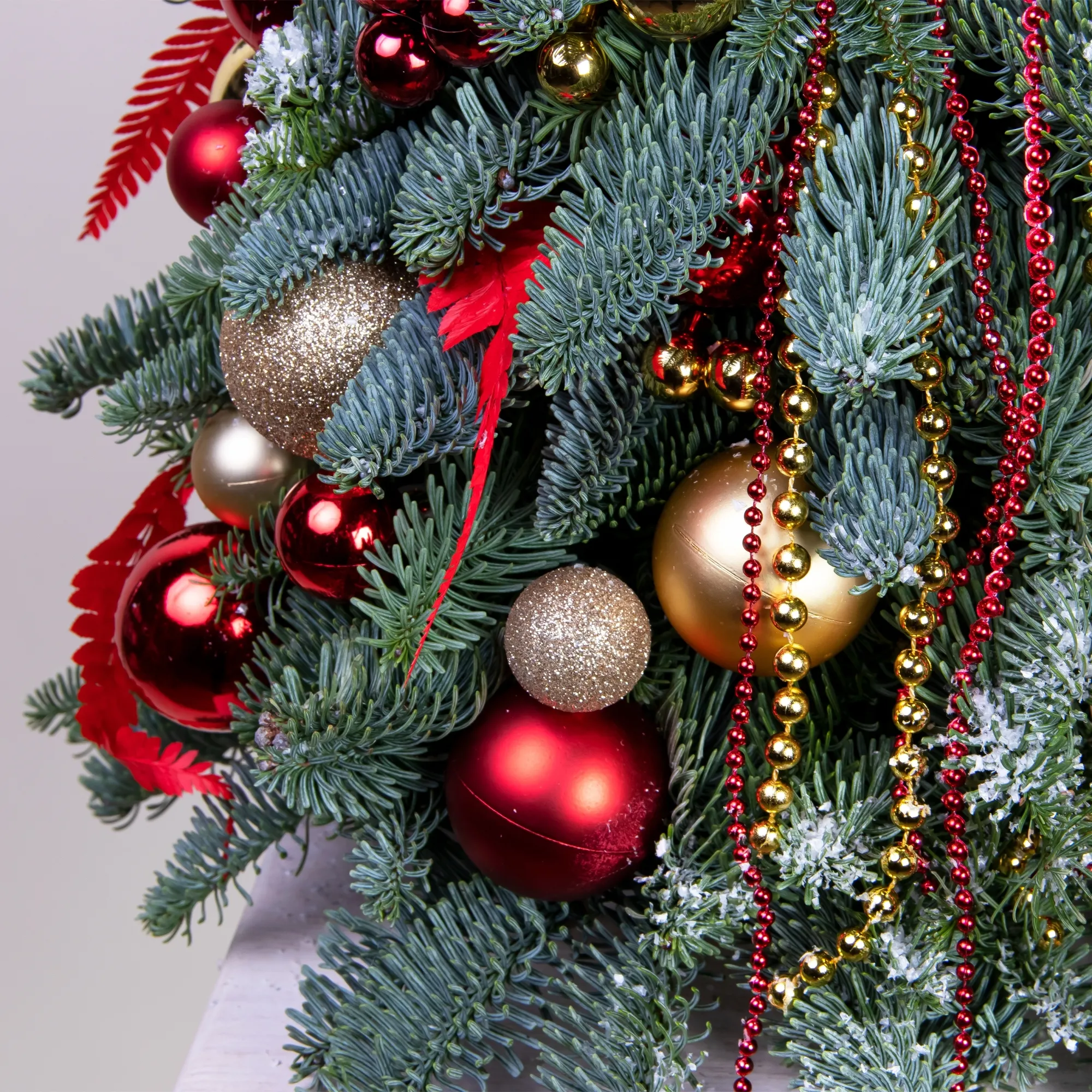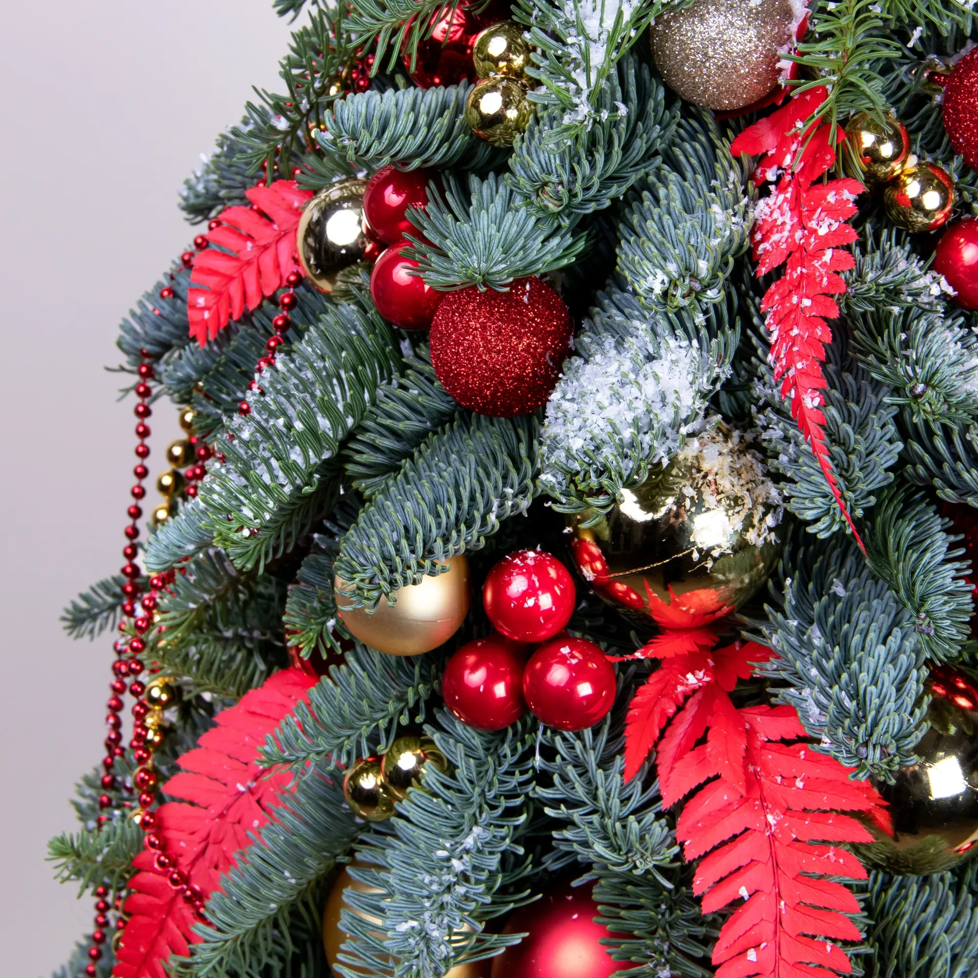 Композиция "Новогодняя Ель Красная L" из нобилиса с игрушками
