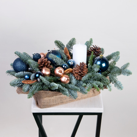 Композиция "Новогодняя со свечой Синяя M"