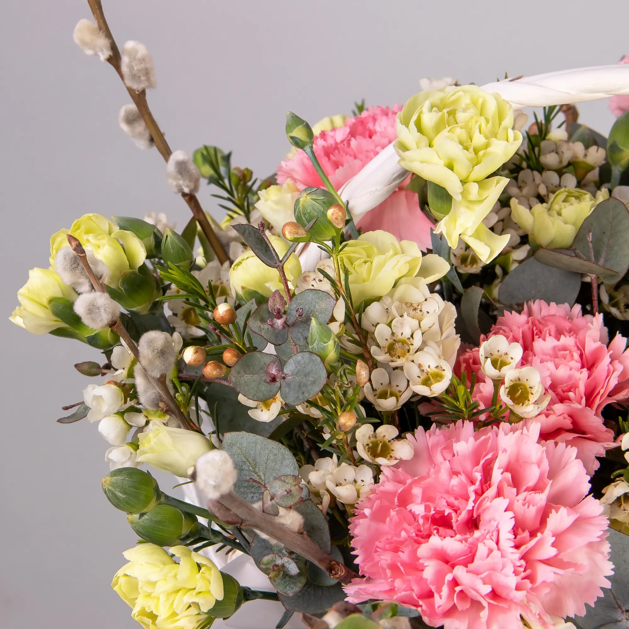 Верба-5, Гвоздика-5, Эустома-2, Гвоздика кустовая-5, Листья эвкалипта-3