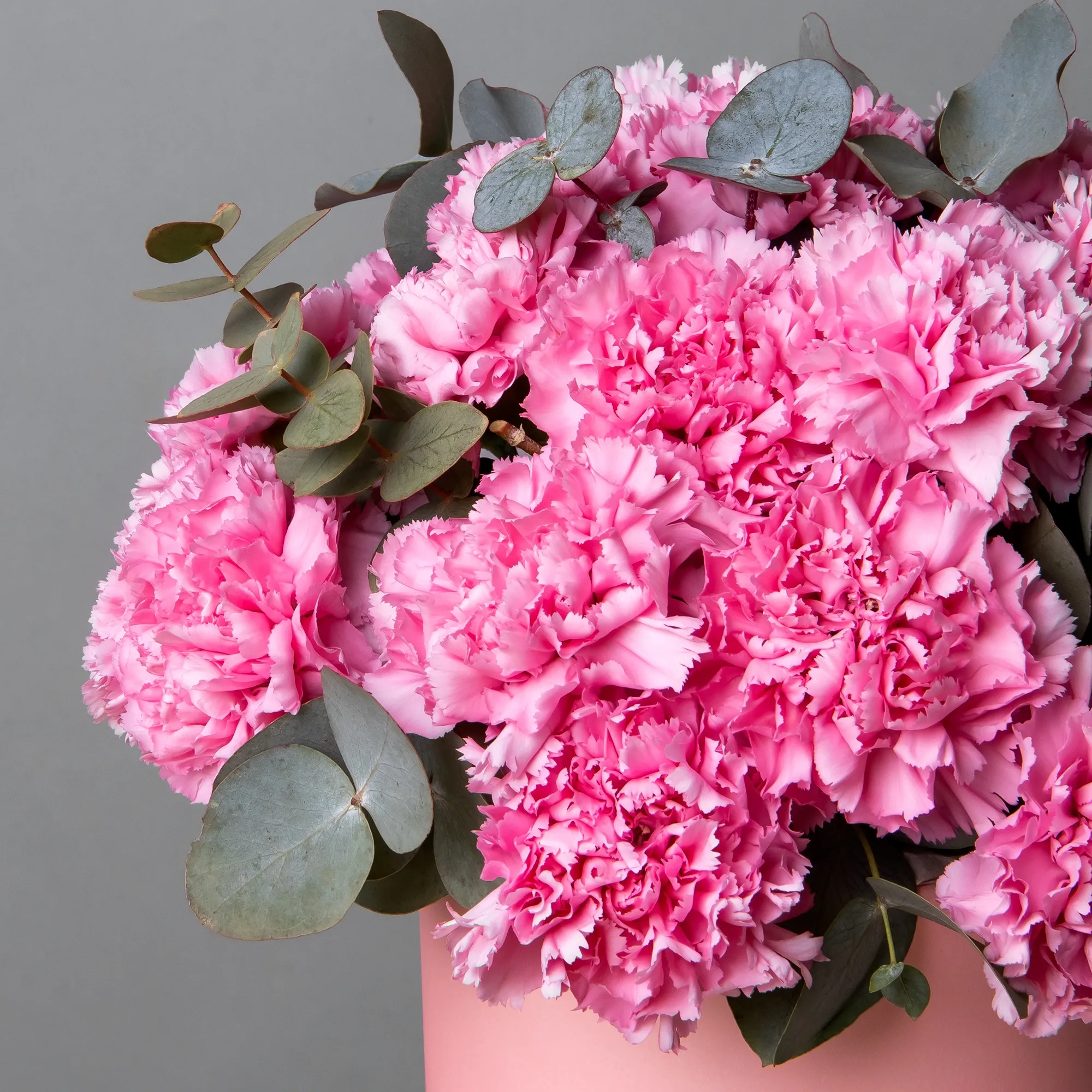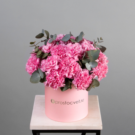 Композиция Шляпная коробка "Розовые Диантусы" М