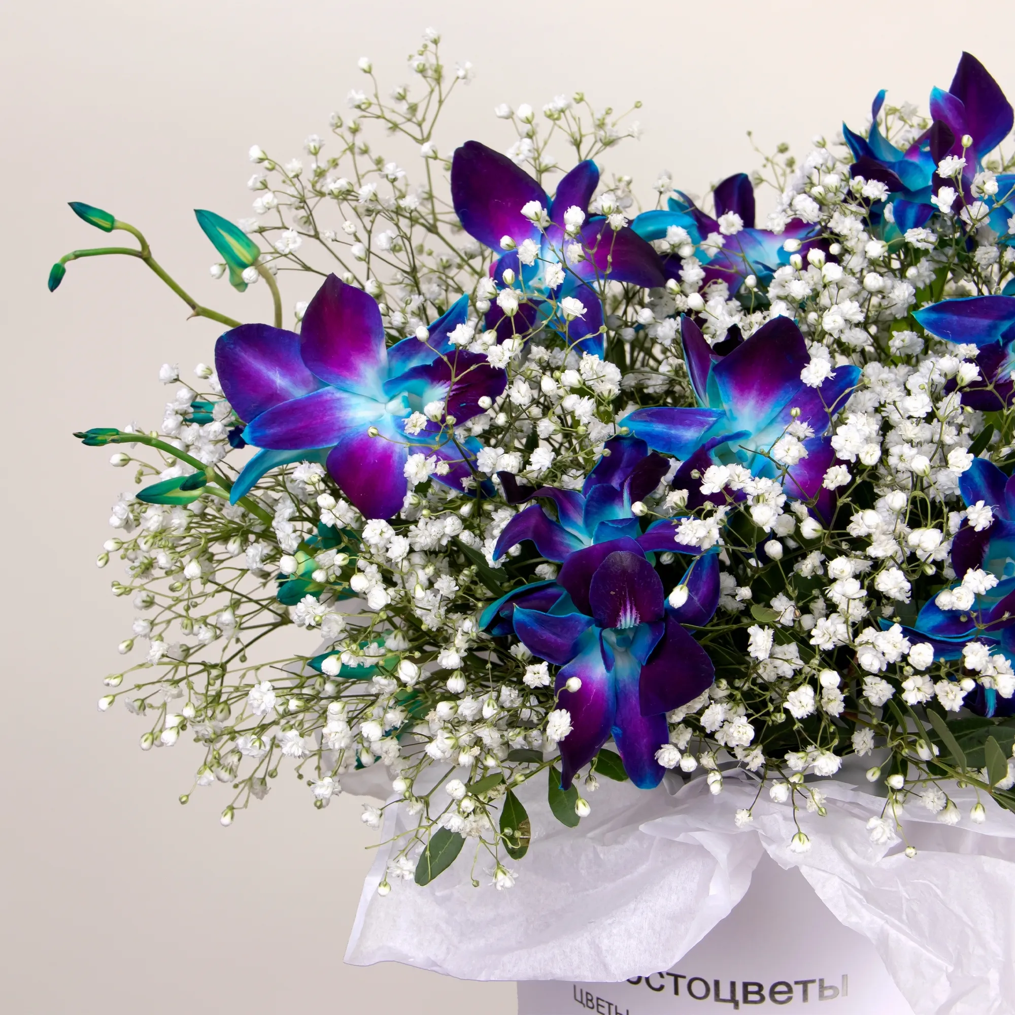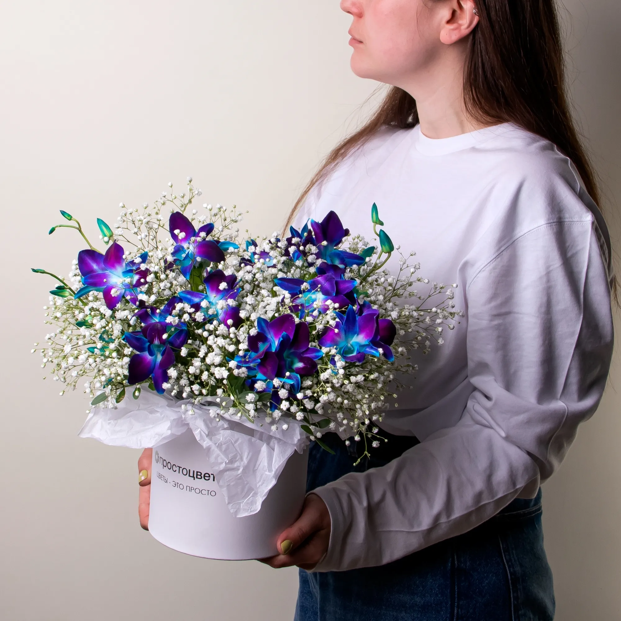 Цветы в составе данной композиции могу меняться, в зависимости от сезонности и задумки флориста-дизайнера.
