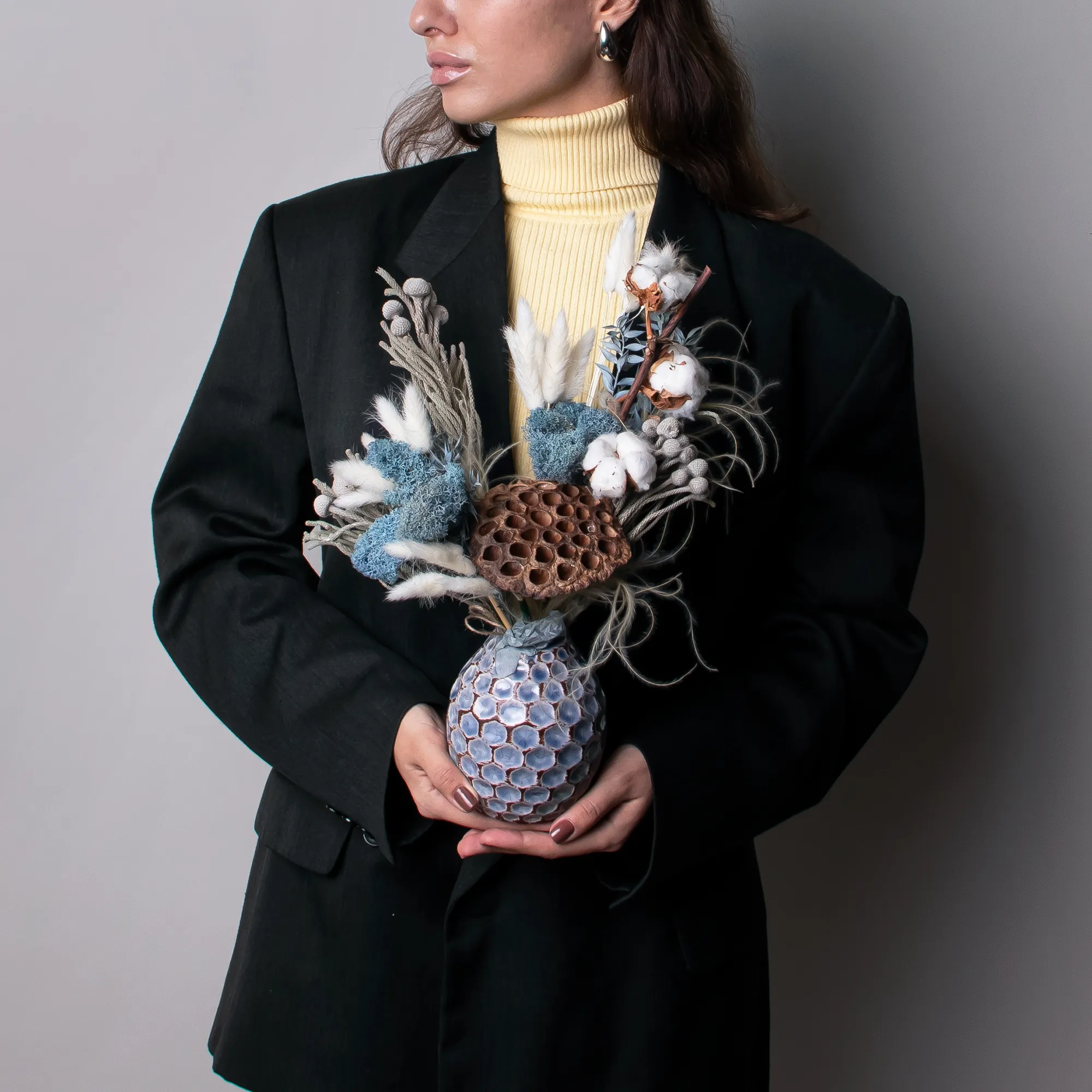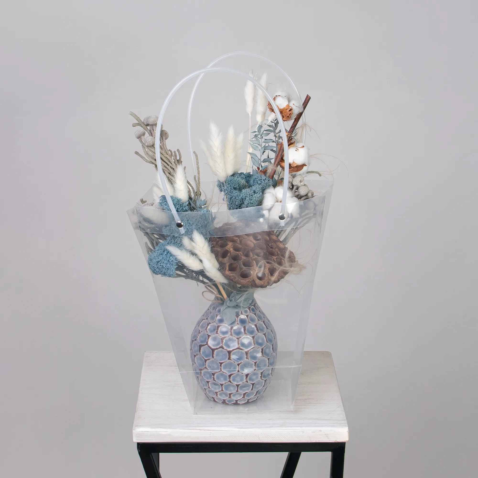 В составе композиции хлопок "Тиффани", стифа, рускус, лагурус, аурея.