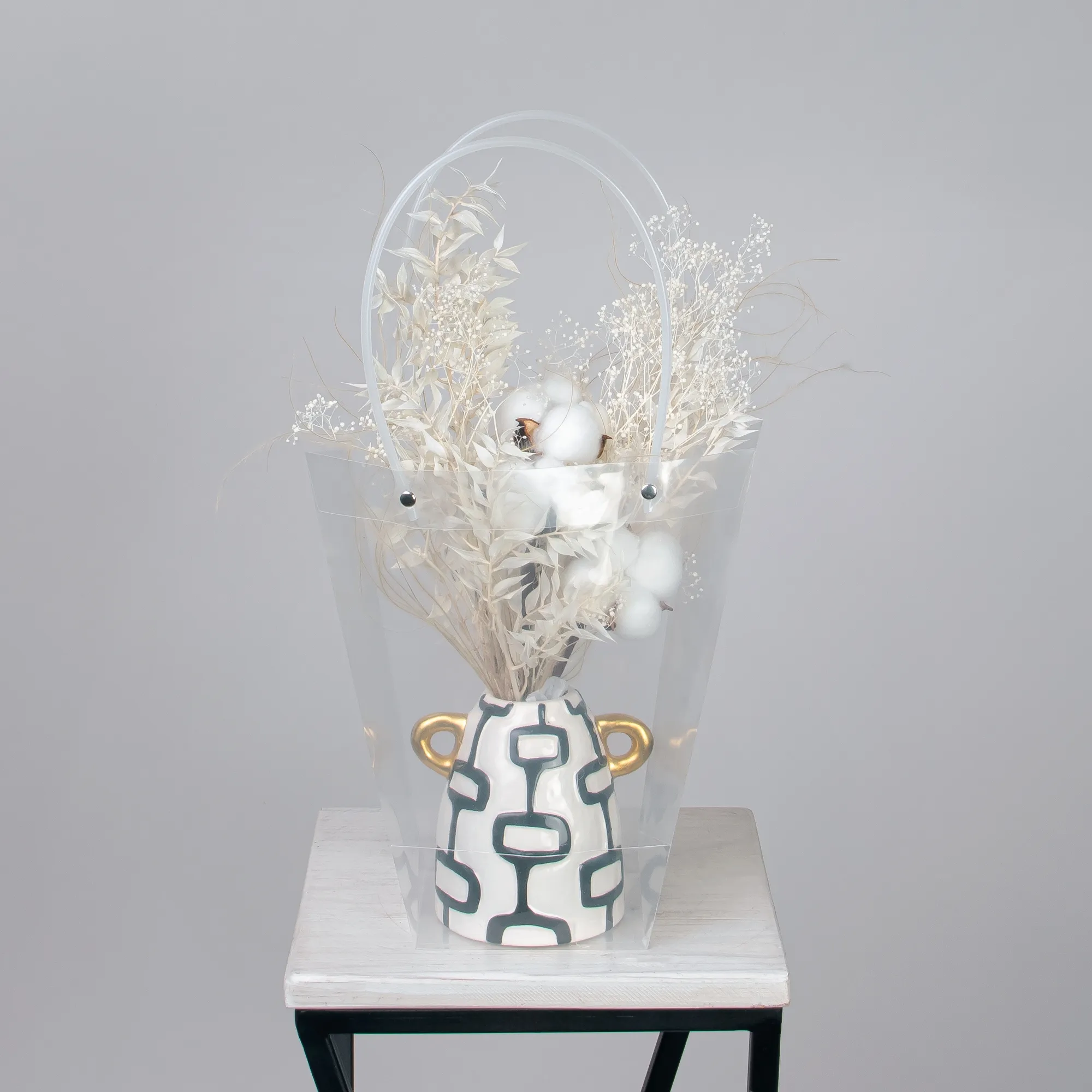 В составе композиции хлопок "Тиффани", стифа, рускус, лагурус, аурея.