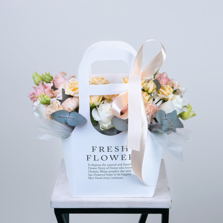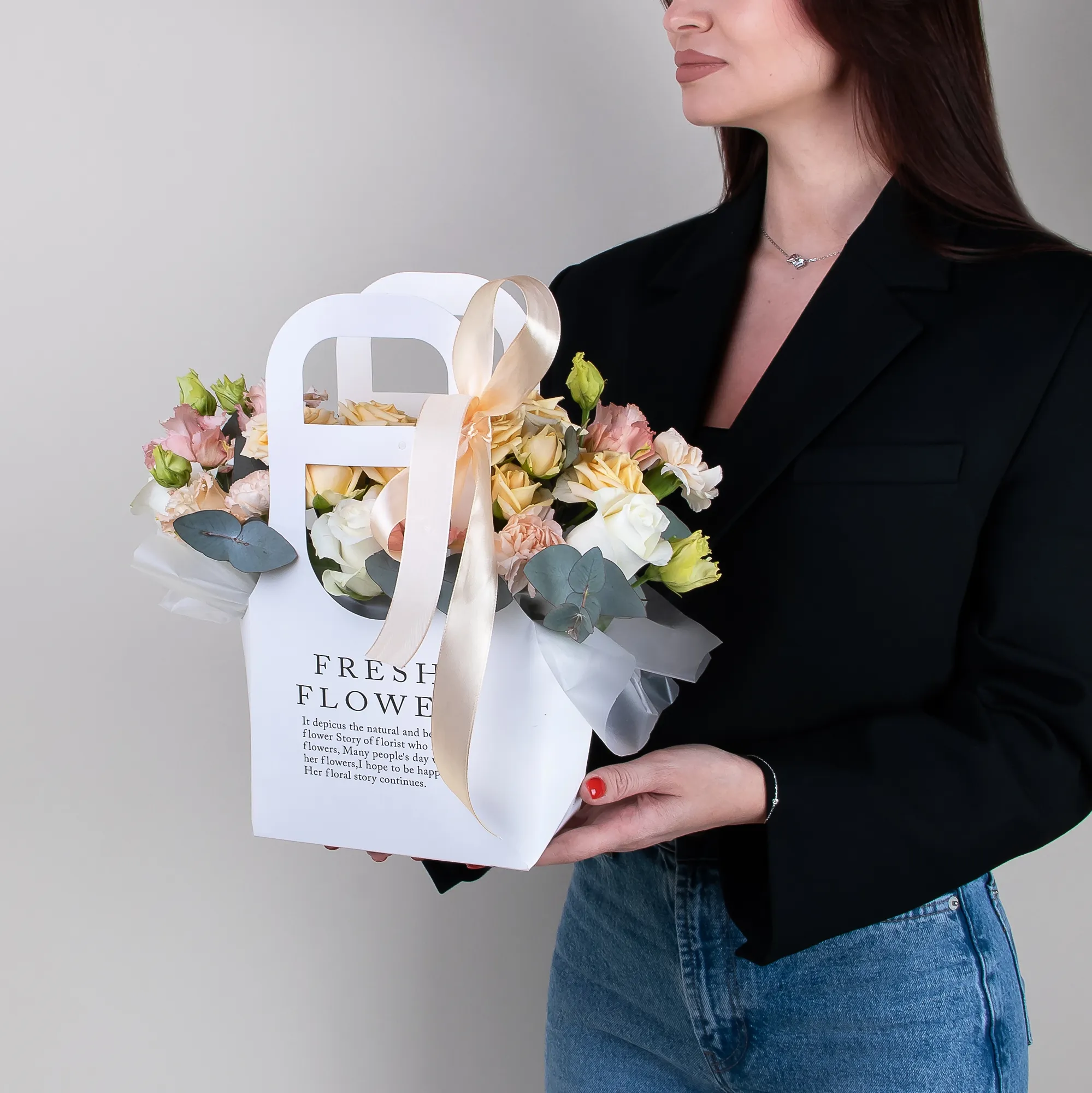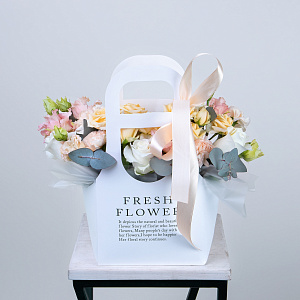 Цветы в составе данной композиции могу меняться, в зависимости от сезонности и задумки флориста-дизайнера.