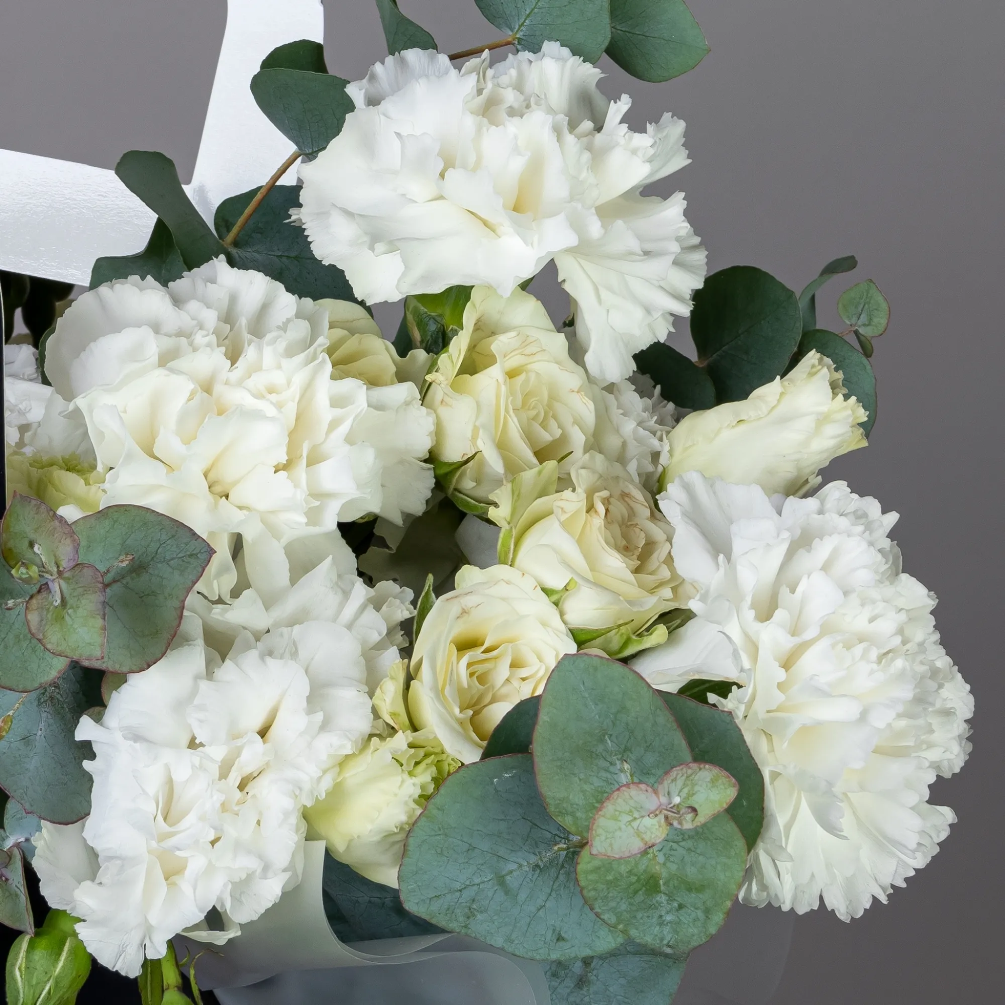 Гвоздика, Роза, Эустома, Листья эвкалипта
