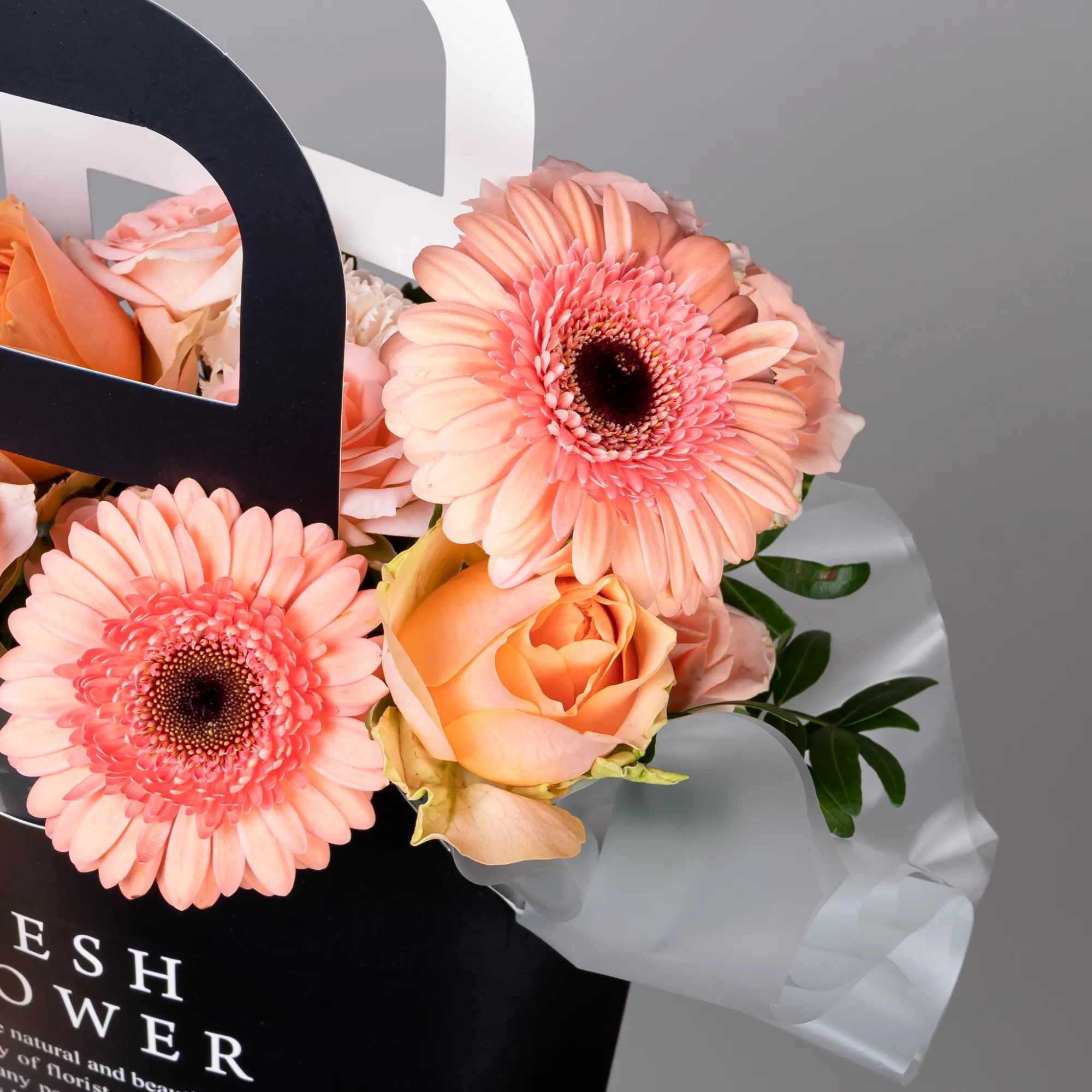 Цветы в составе данной композиции могу меняться, в зависимости от сезонности и задумки флориста-дизайнера.