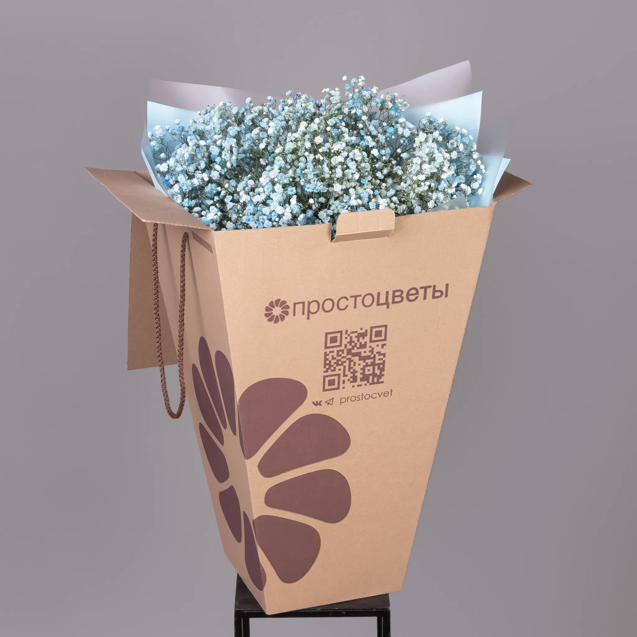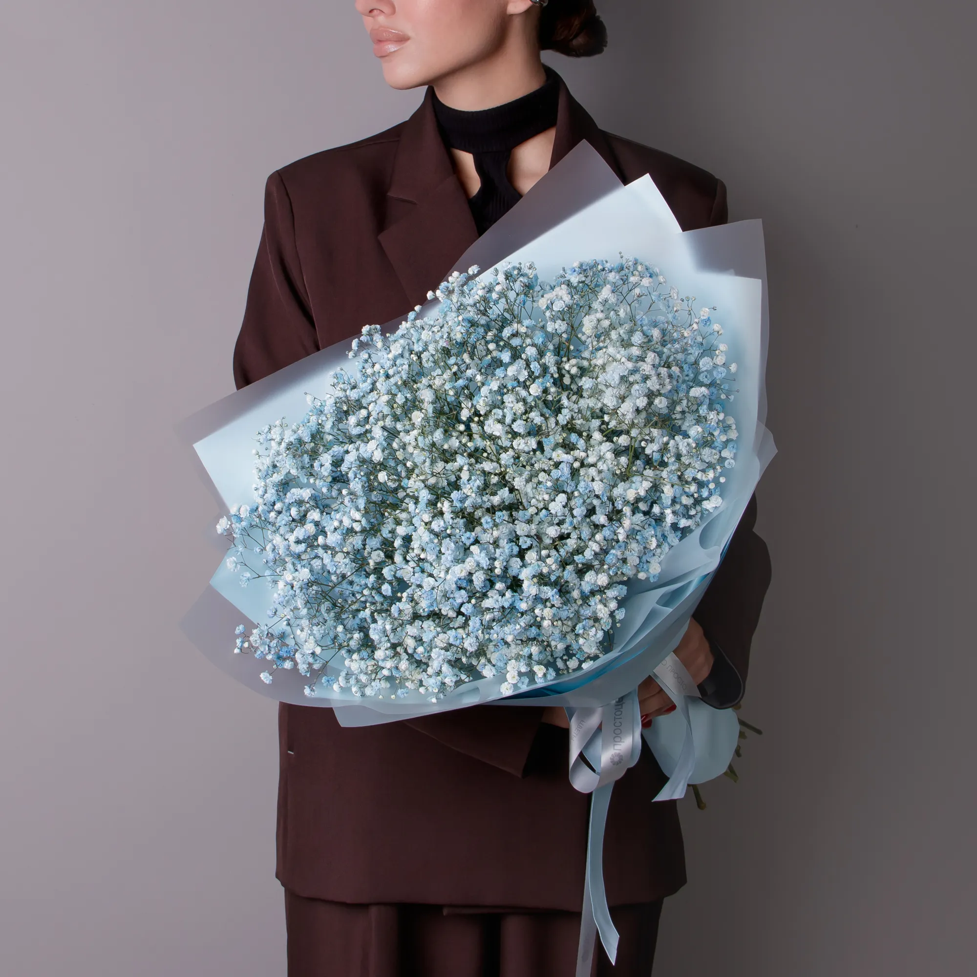 Букет Гипсофила "Крашенная светло-синяя" из 27 гипсофила высотой 80 см красиво упакуем