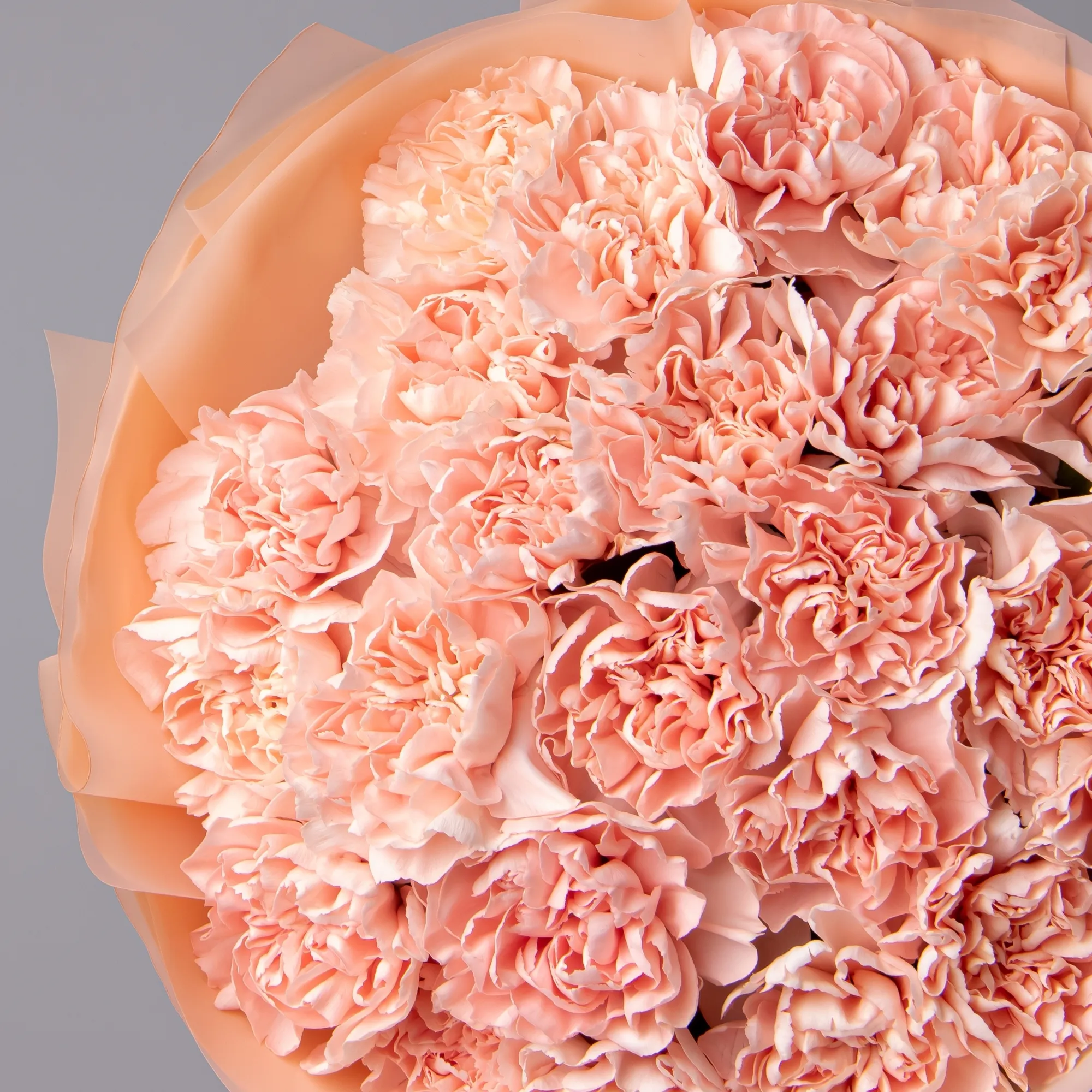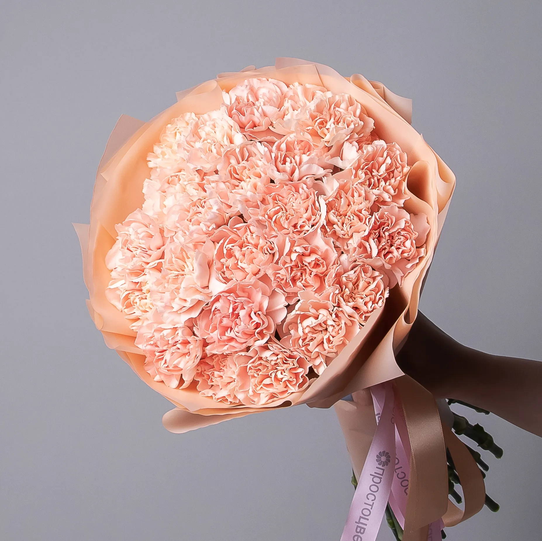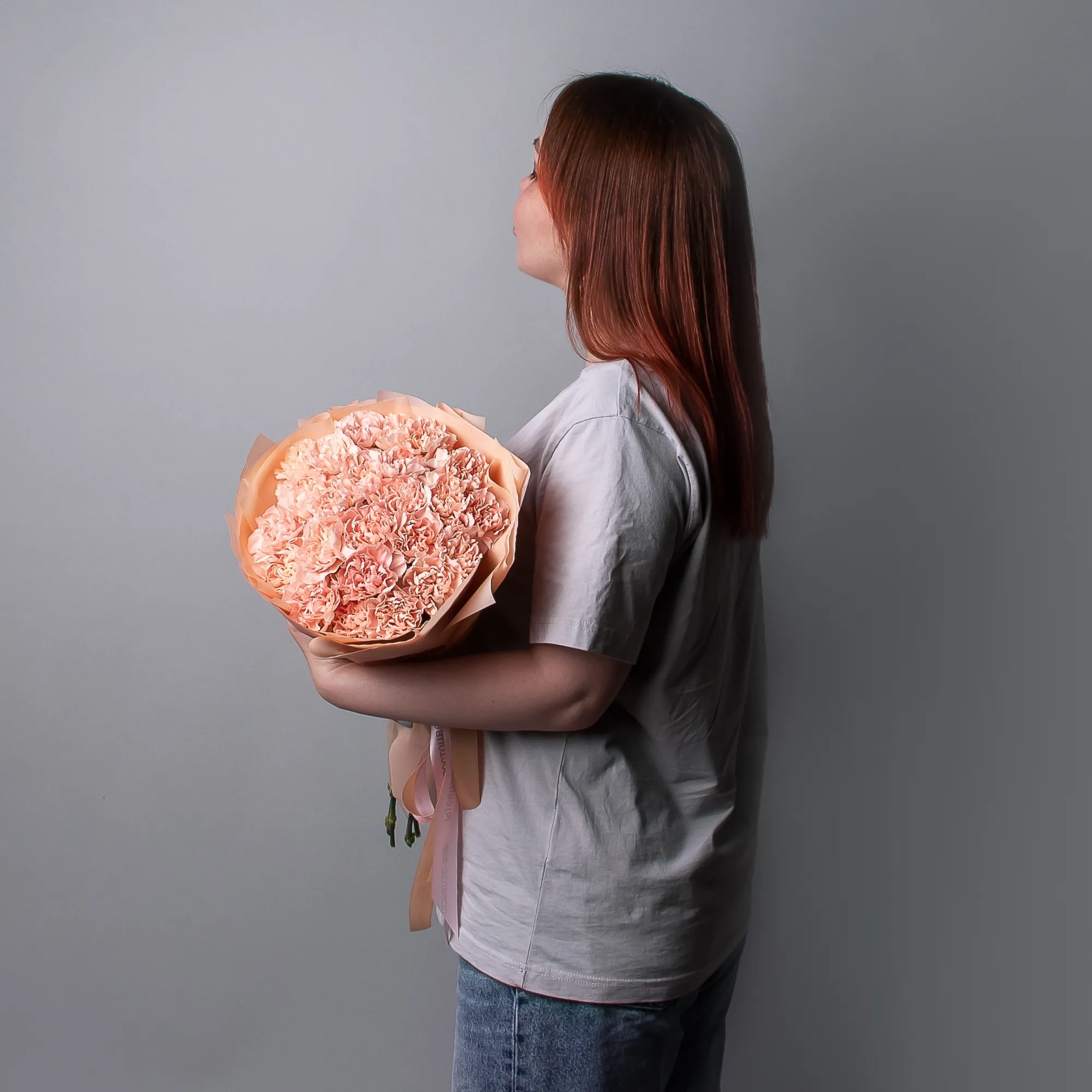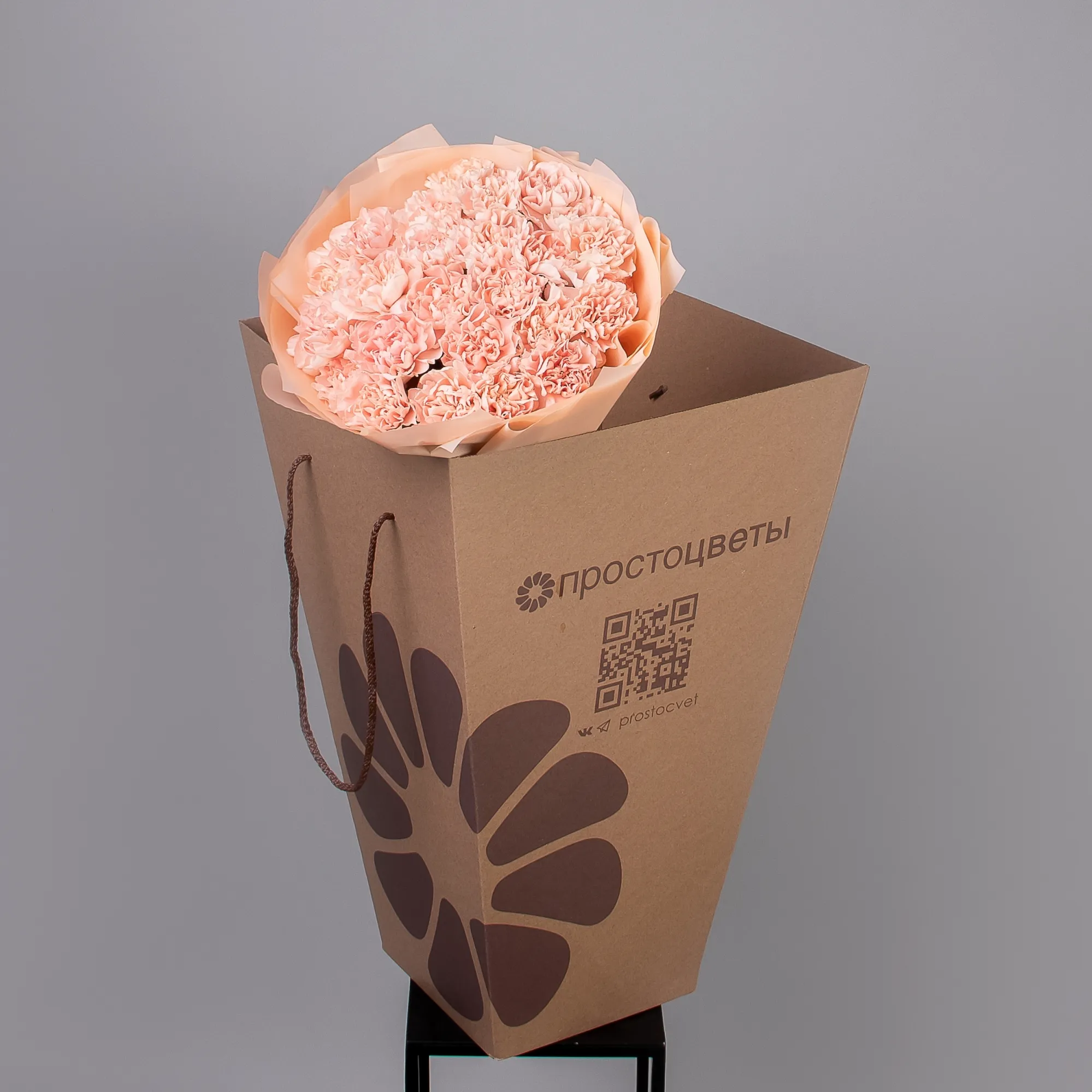 Букет Гвоздика "Новиа" из 15 гвоздик высотой 60 см красиво упакуем