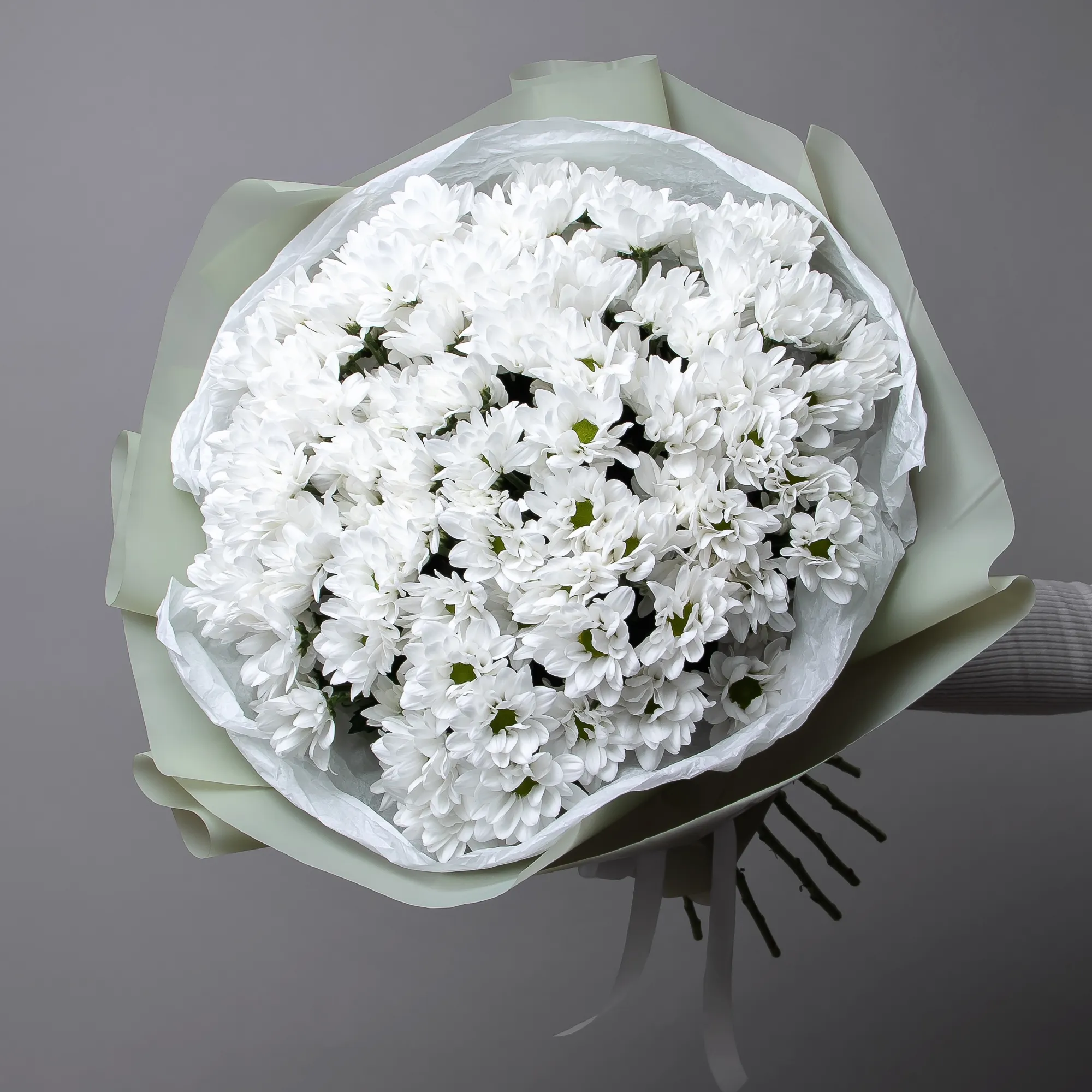 Букет Хризантема кустовая "Шик" из 7 белых хризантема_кустовая высотой 70 см красиво упакуем