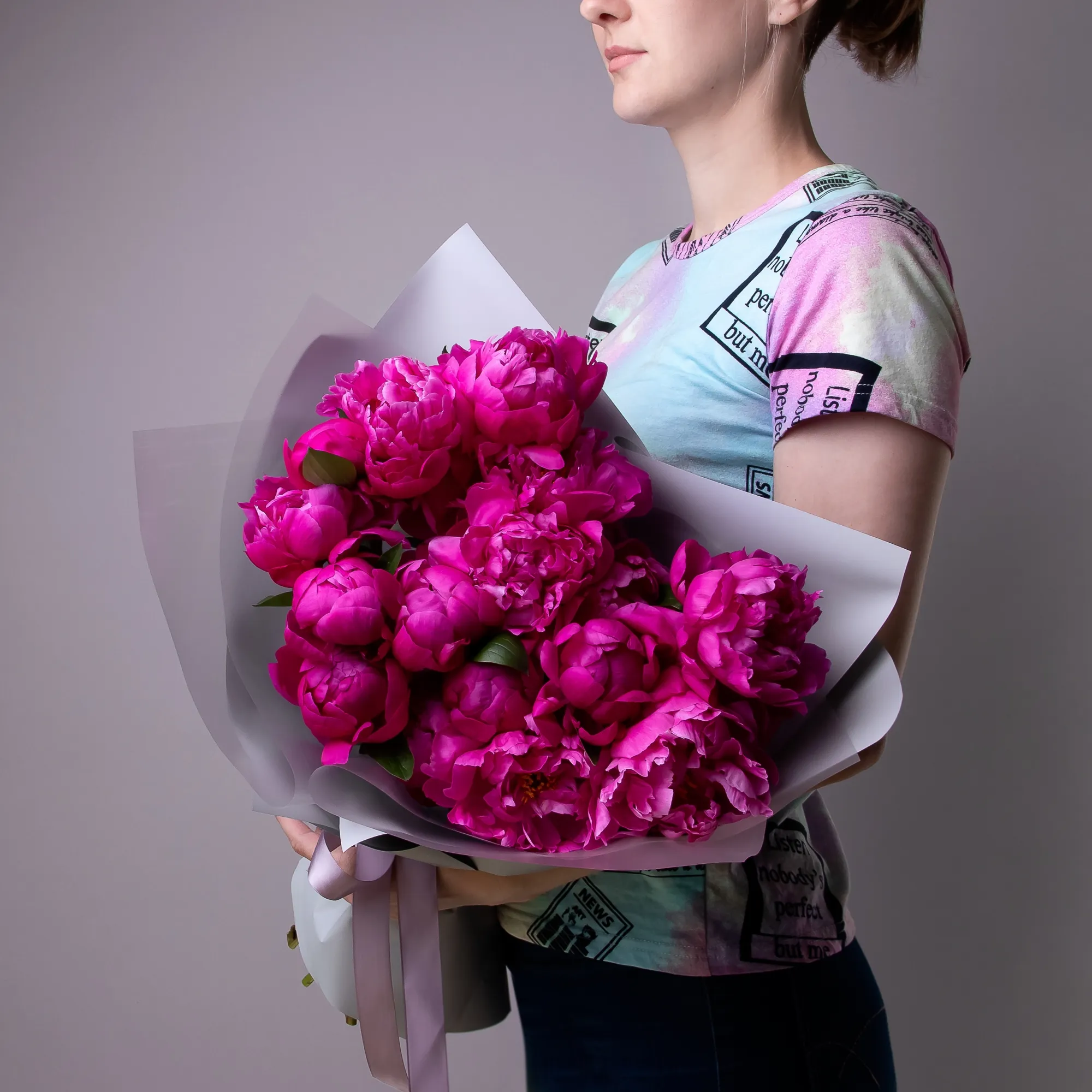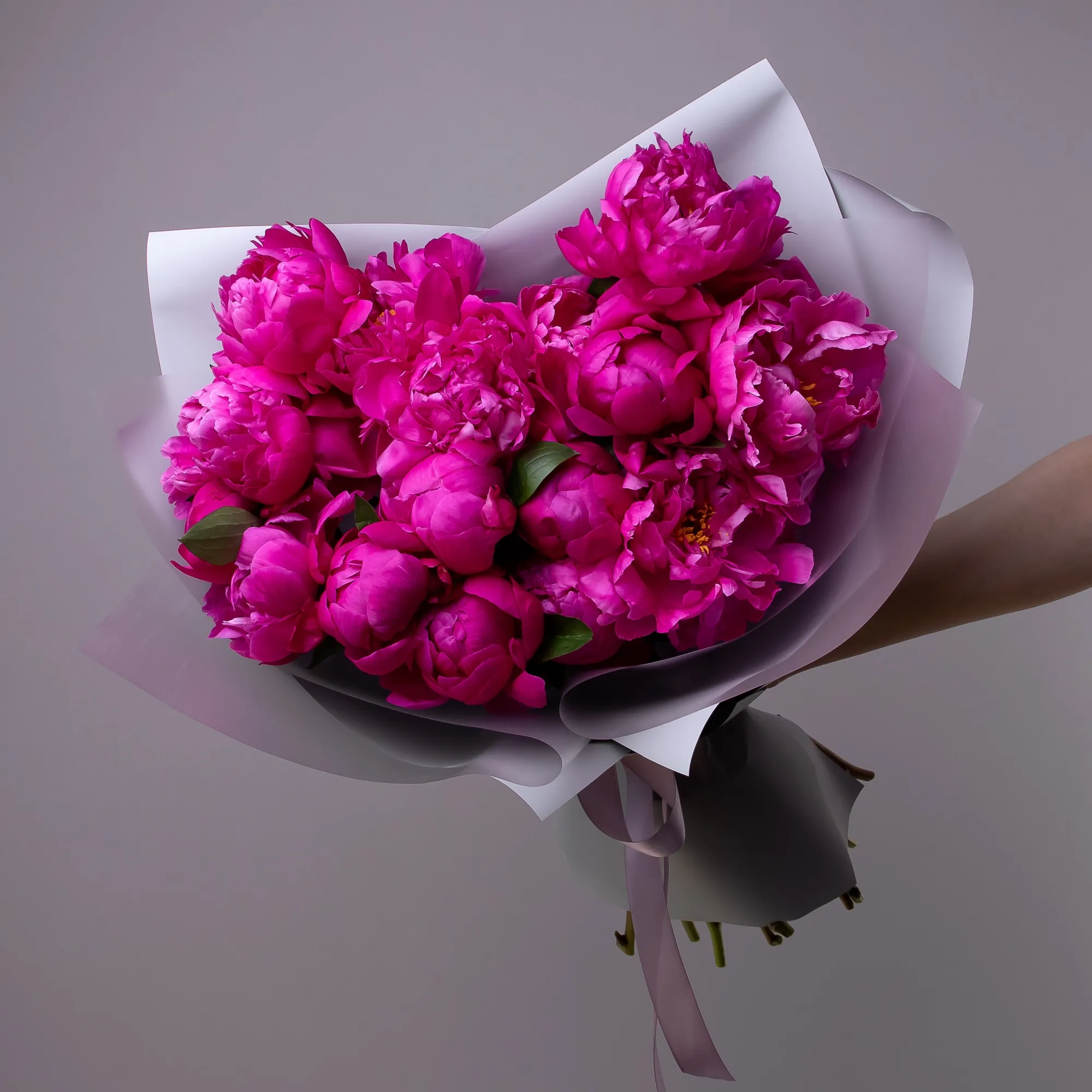 Обратите внимание, что пионы могут приходить вам в еще «закрытом» состоянии. Это значит, что бутоны будут выглядеть менее распустившимися, чем на фото. Не переживайте! Так и должно быть. Это значит, что цветок свежий. Вы сможете наблюдать волшебство раскрытия собственными глазами. Главное – регулярно подрезать стебель и менять воду.