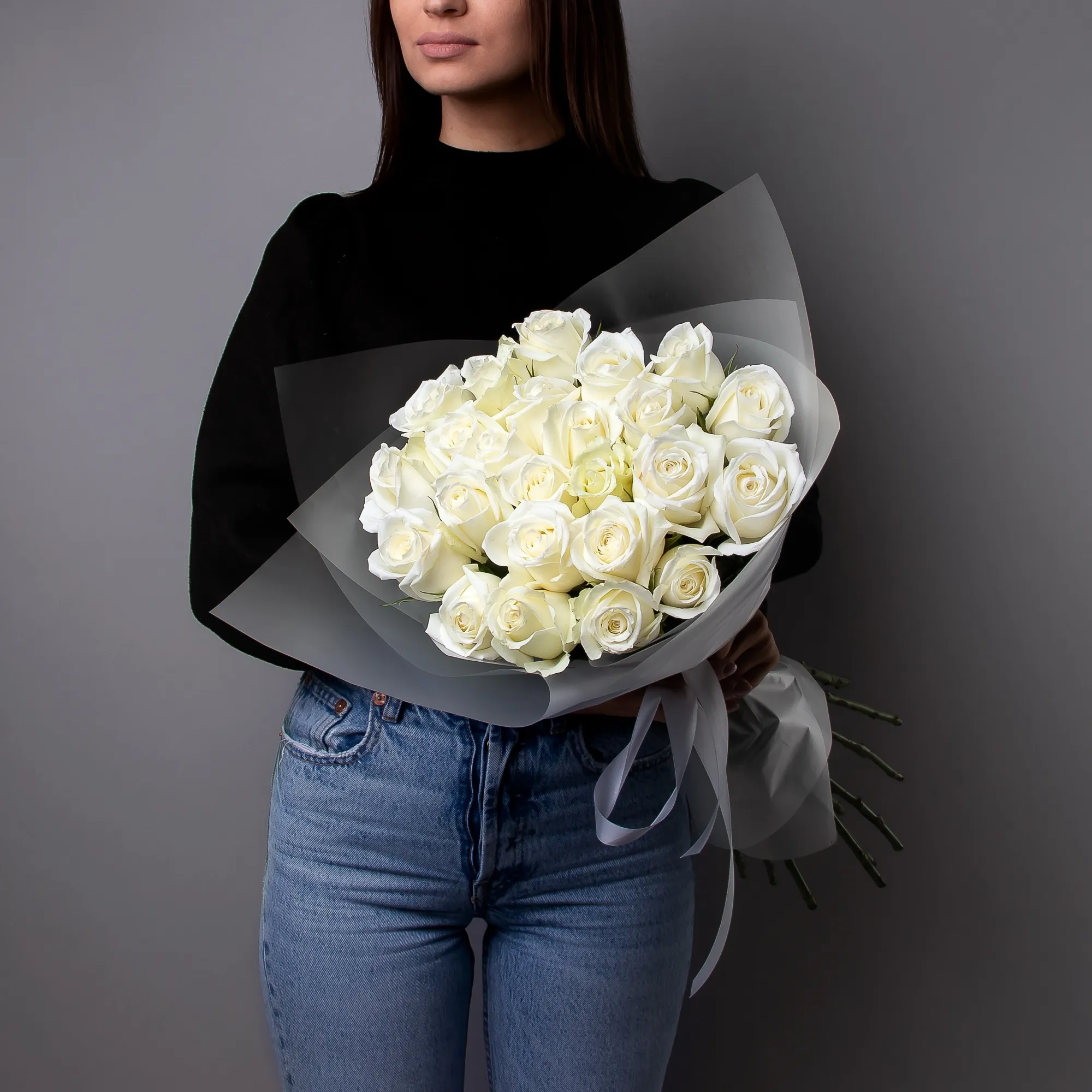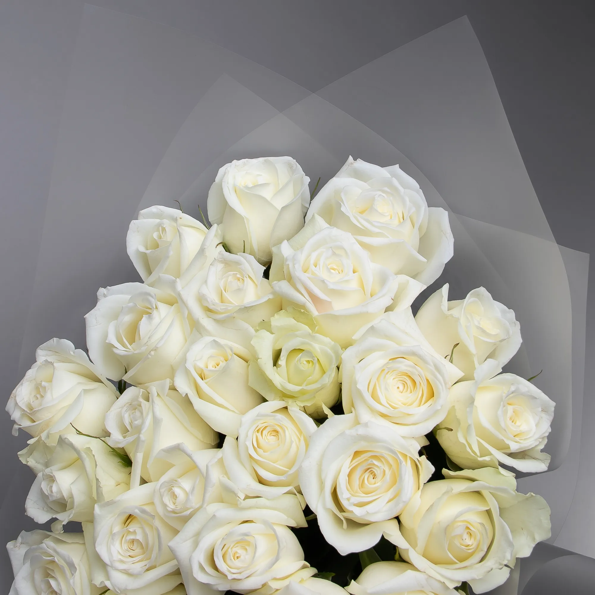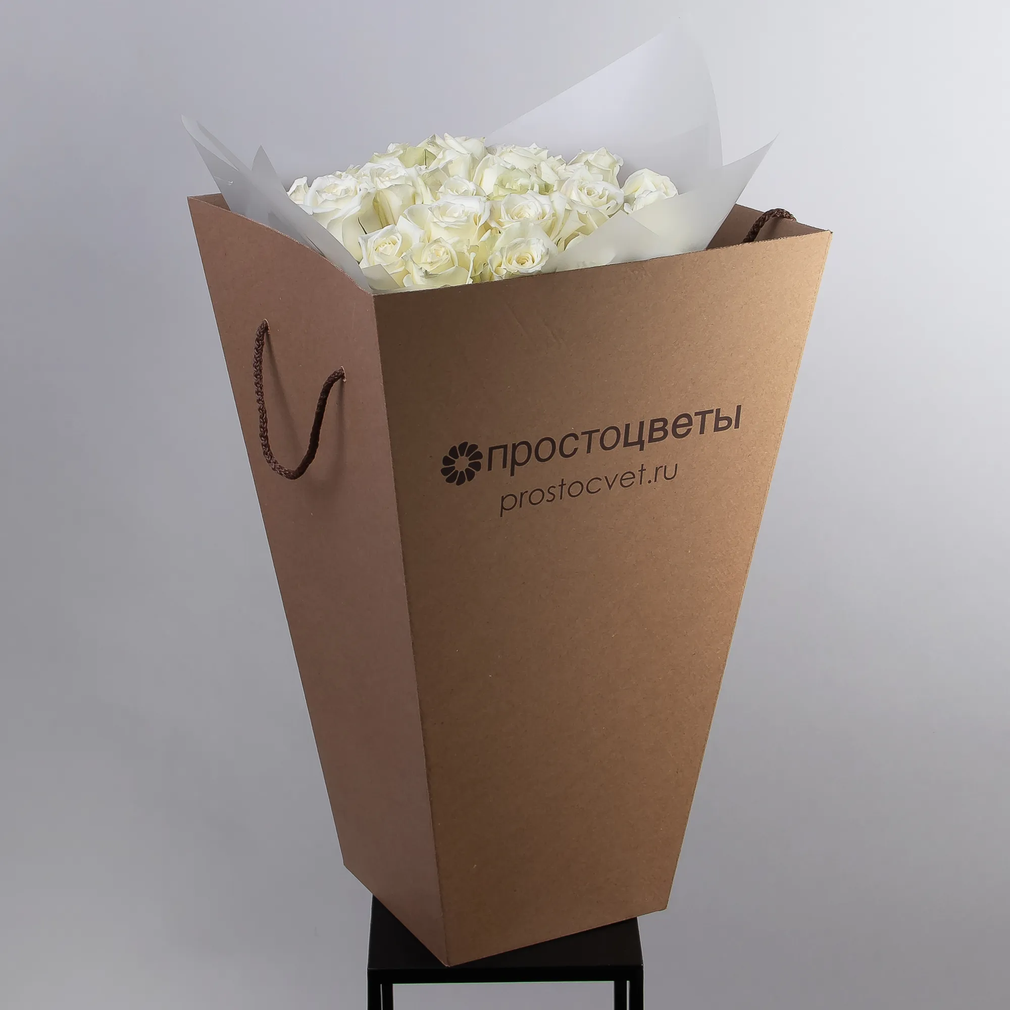 Букет Роза "Айсбрейкер" из 21 белых роз высотой 60 см красиво упакуем