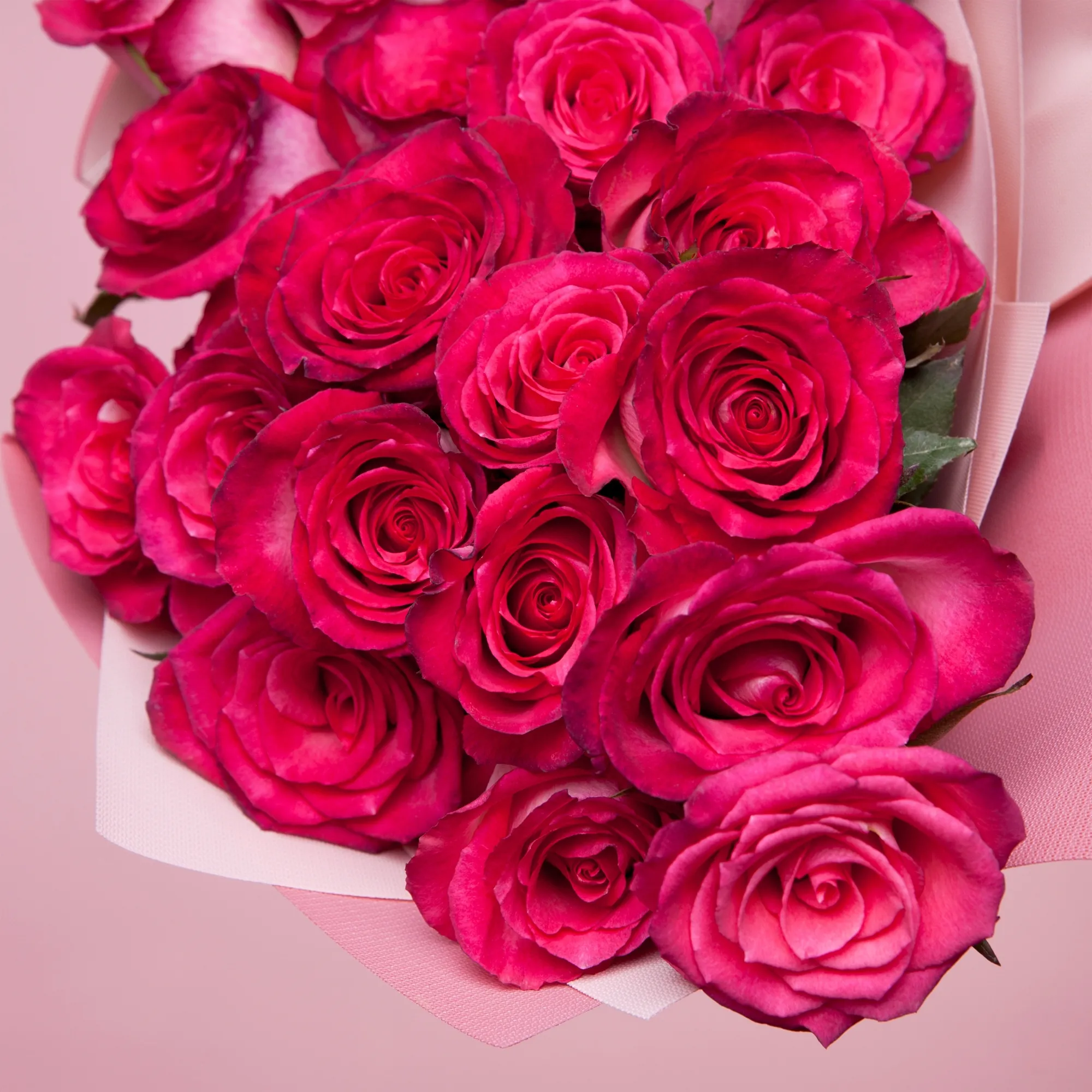 На фотографии представлен букет из 25 стеблей розы.