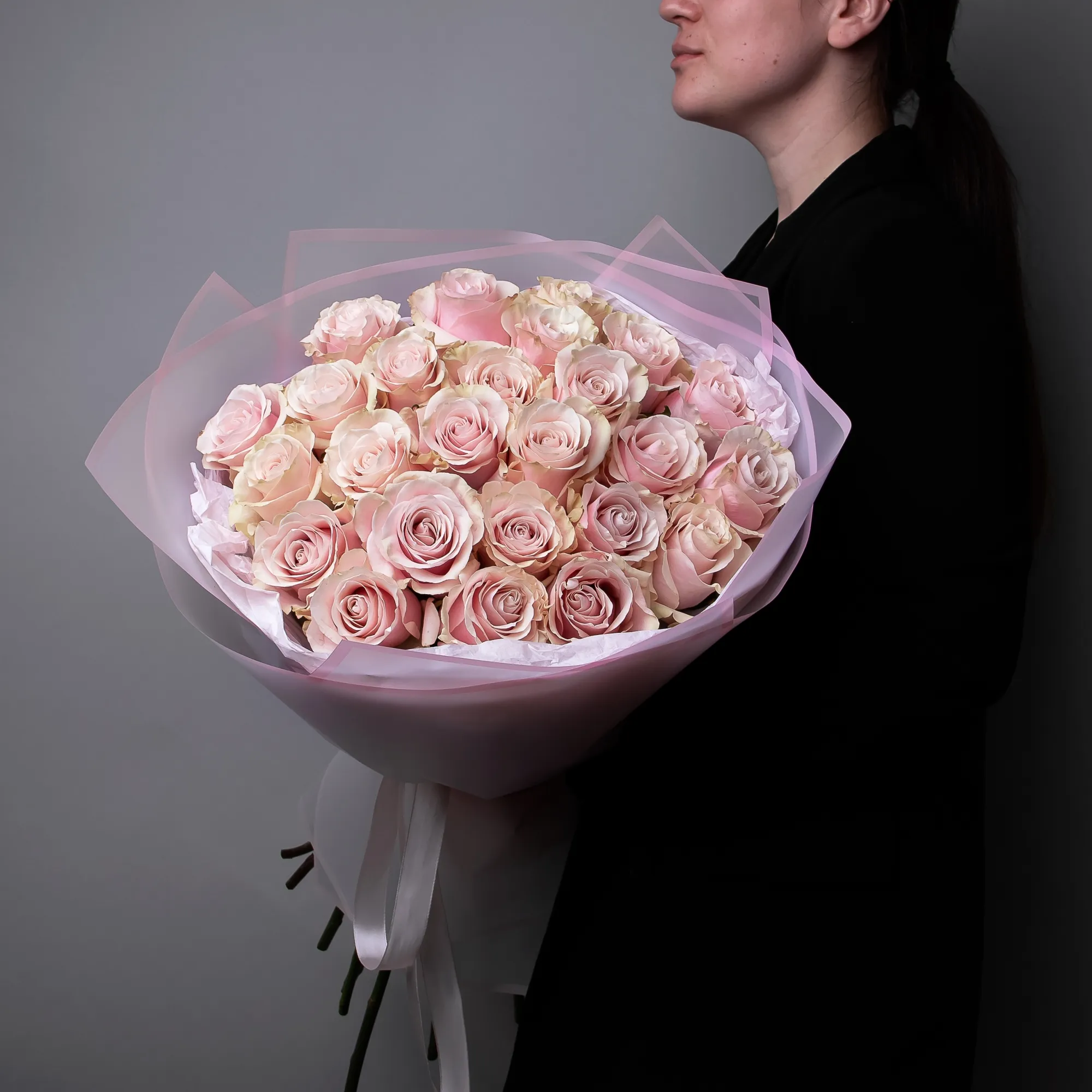 Наши розы сорта «Пинк Мондиал», с характерным пастельно-матовым цветом бутона и оливковой каймой лепестка, приезжают в Россию из Эквадора, где благоприятный климат и плодородные вулканические почвы позволяют выращивать розы с яркой насыщенной окраской.