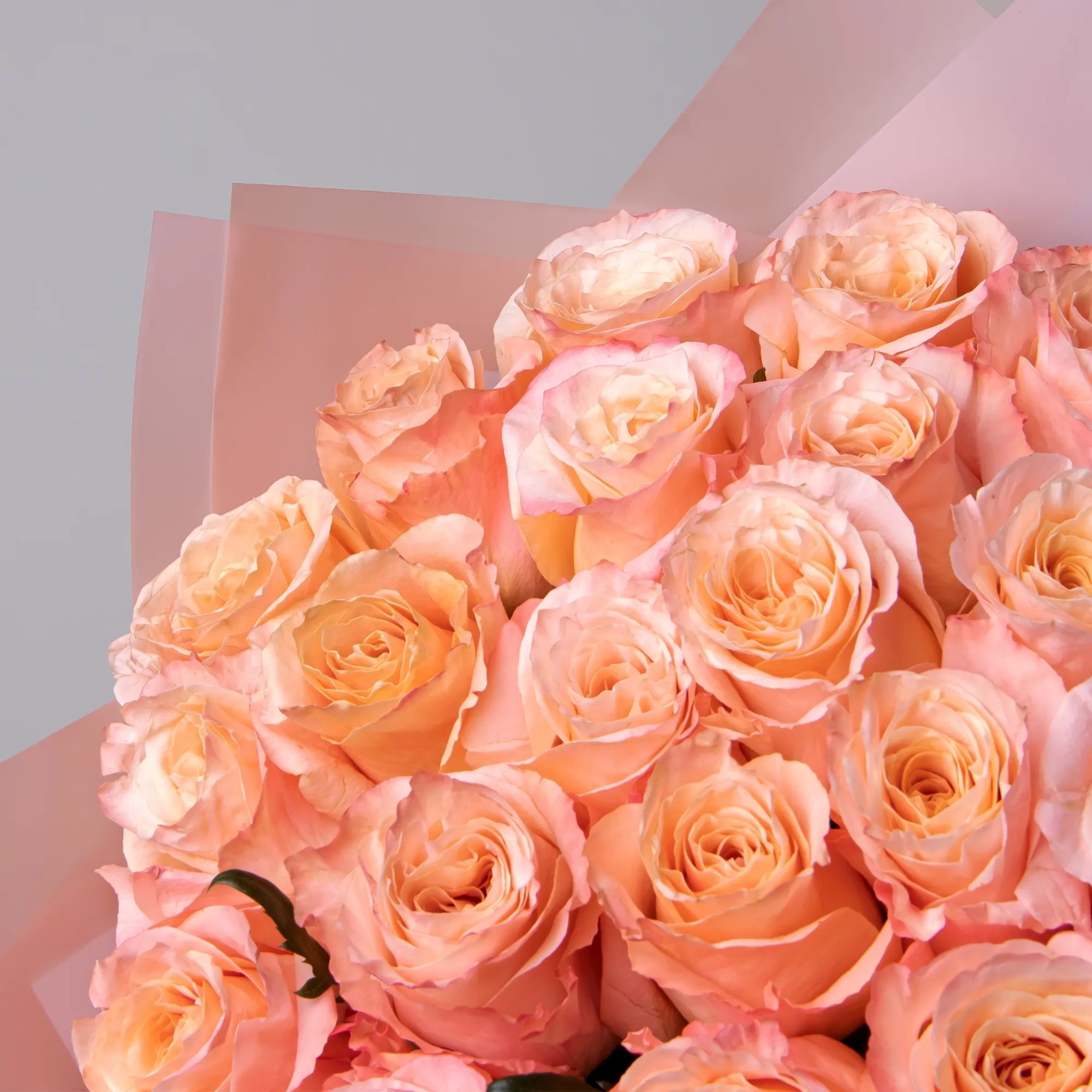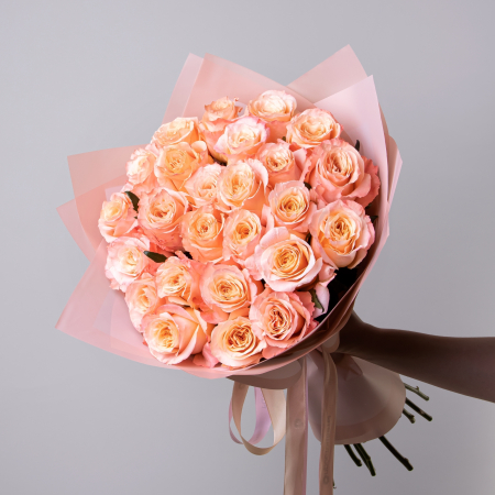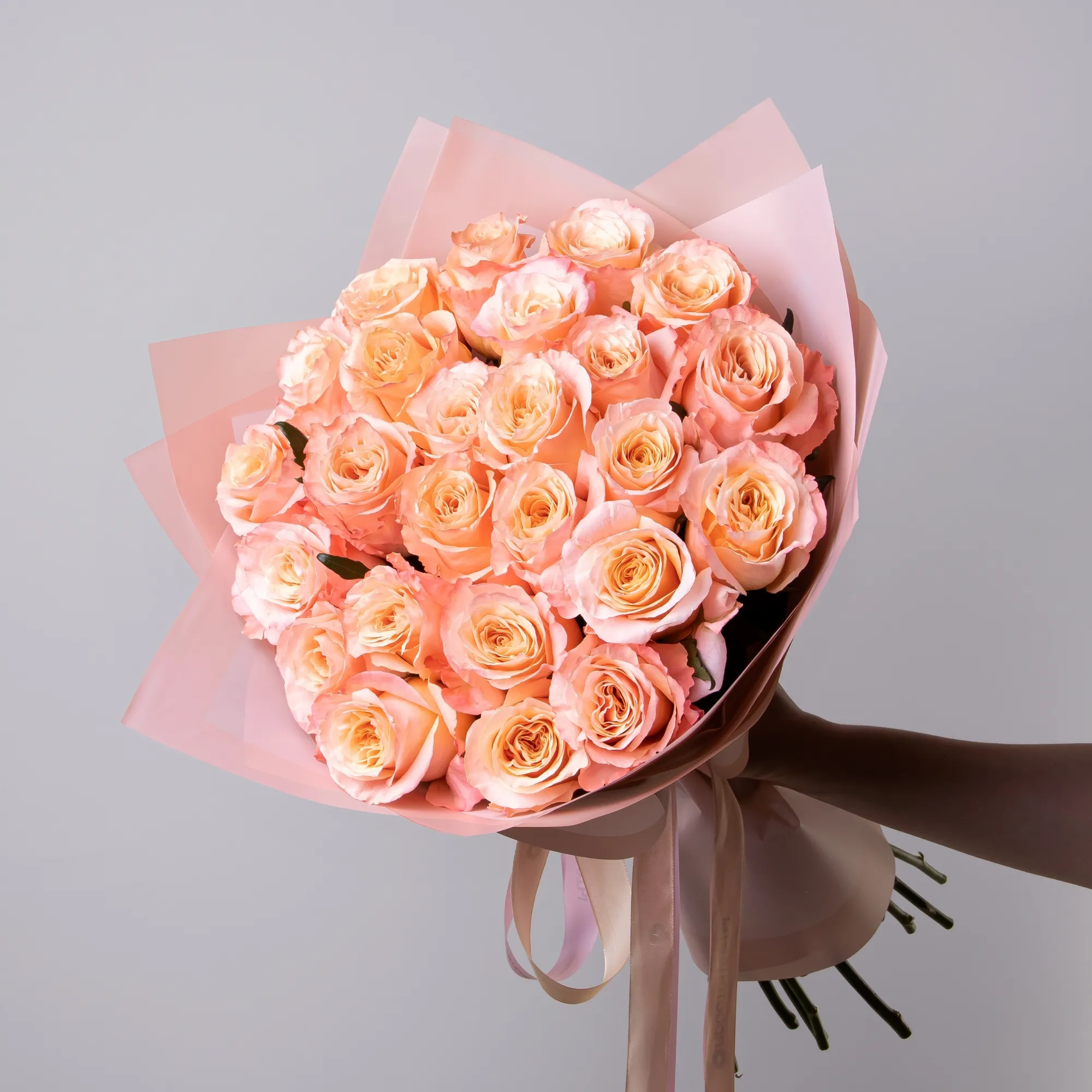 Букет из роз сорта “Шиммер” - это настоящее произведение искусства, которое не оставит равнодушным ни одного ценителя красоты и изящества. Эти розы отличаются крупными и пышными бутонами, лепестки которых имеют уникальный цвет: от нежно-розового до золотистого.