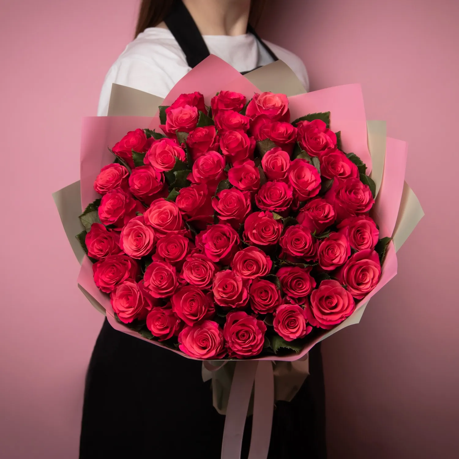 Букет Роза "Такази" из 101 роз высотой 50 см красиво упакуем