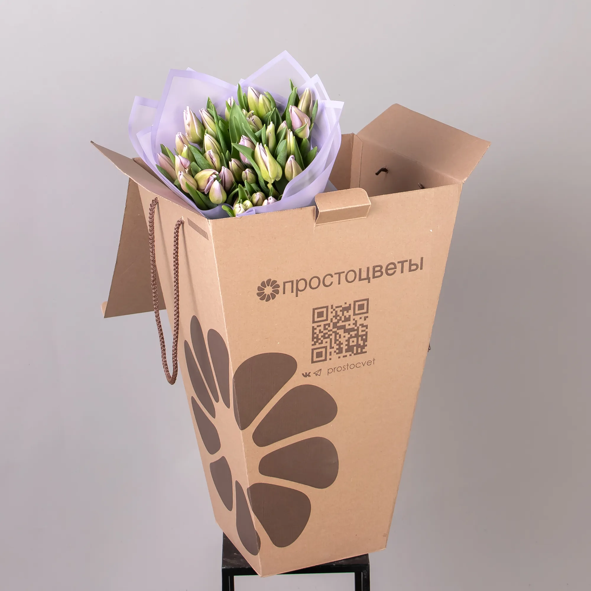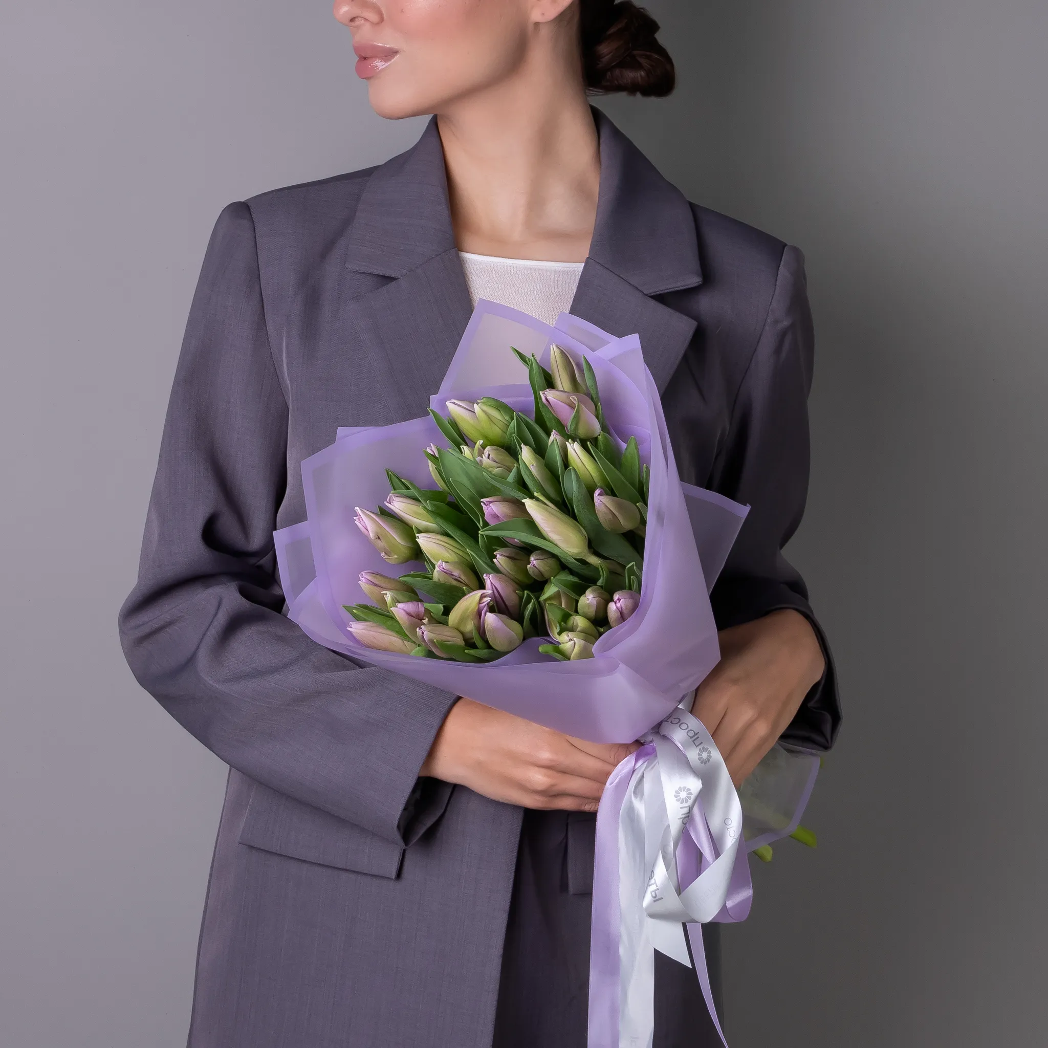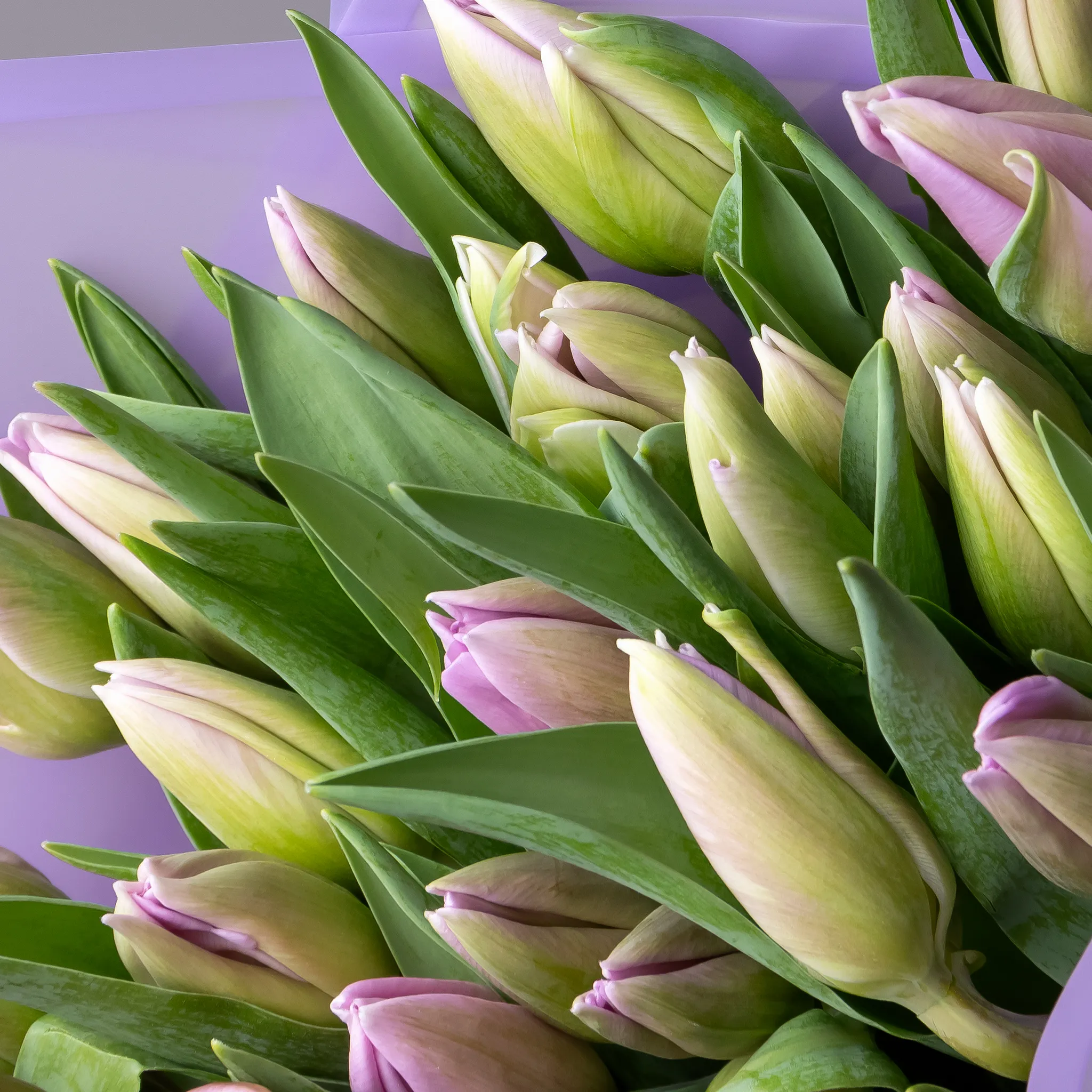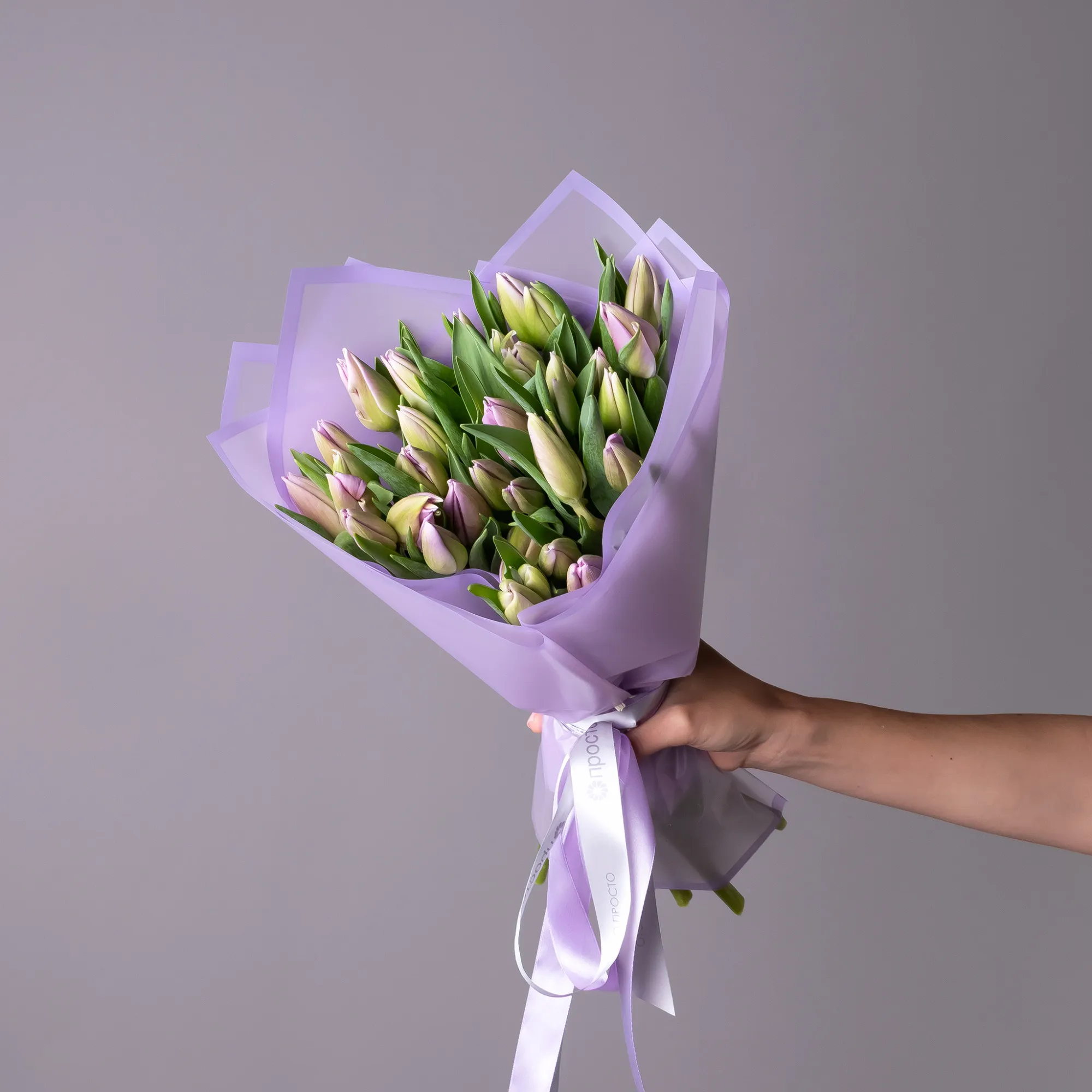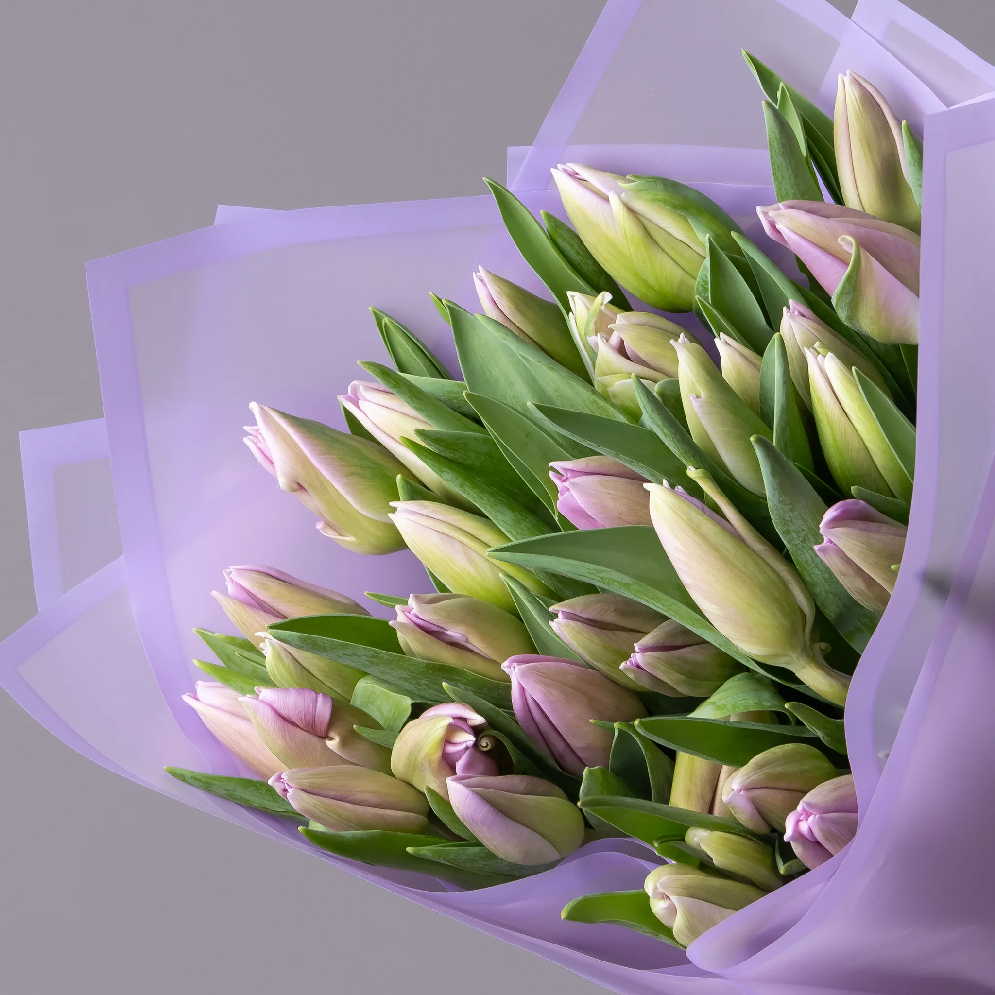 Букет Тюльпан "Эн Свит Бриз" из 51 розовых тюльпанов высотой 40 см красиво упакуем