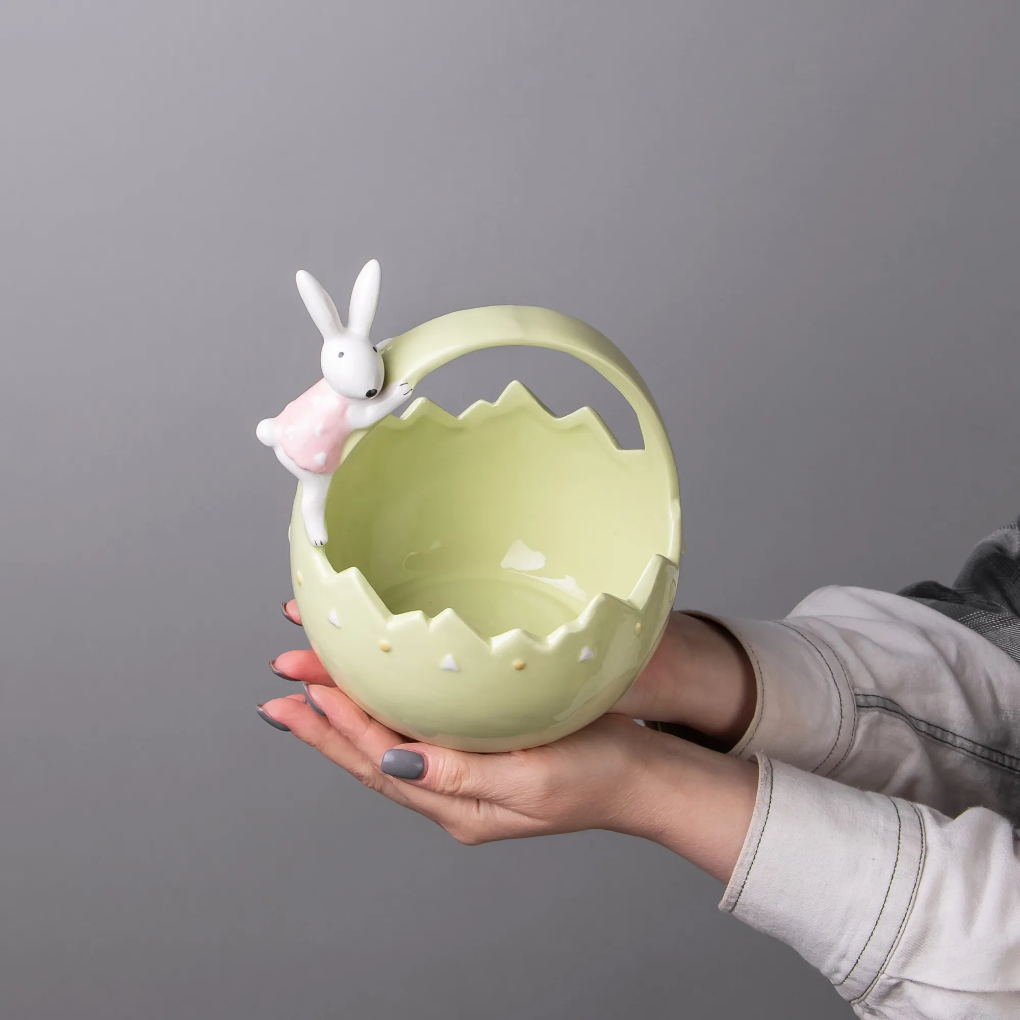 Фигурка ГК Корзина с зайчиком зеленый 834-883 16*15*18см