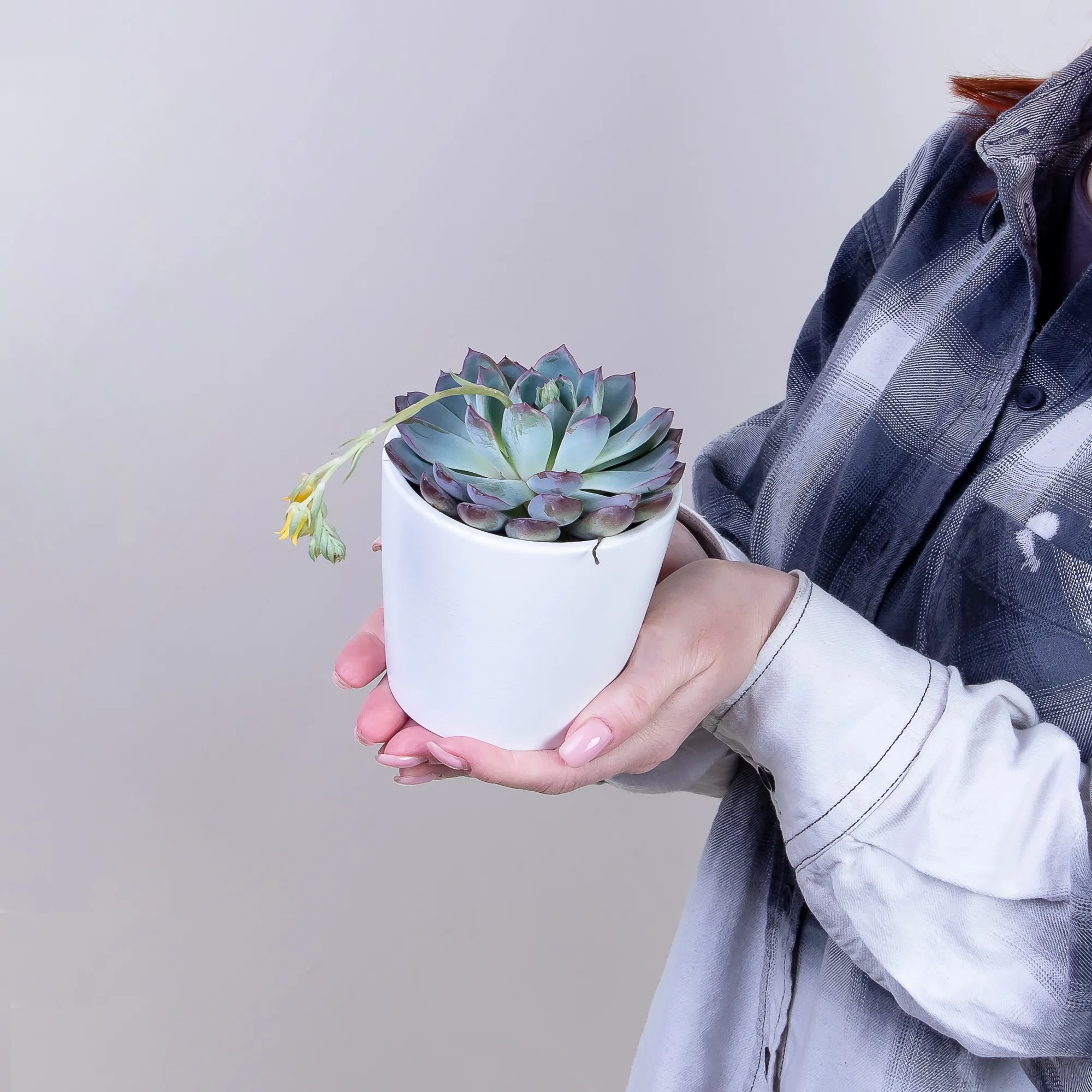 Как правило, растения доставляются в техническом пластиковом горшке от поставщика. Если в наименовании указано «в керамике/цинке», то в эту стоимость входит декоративное кашпо.