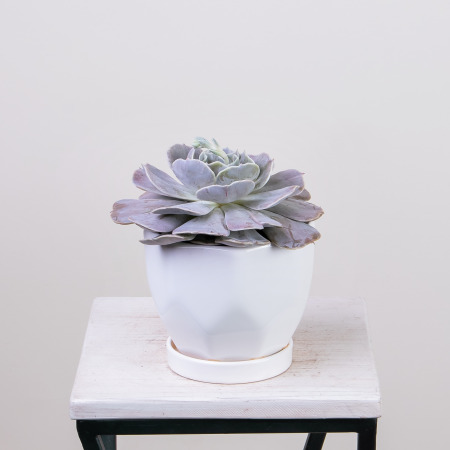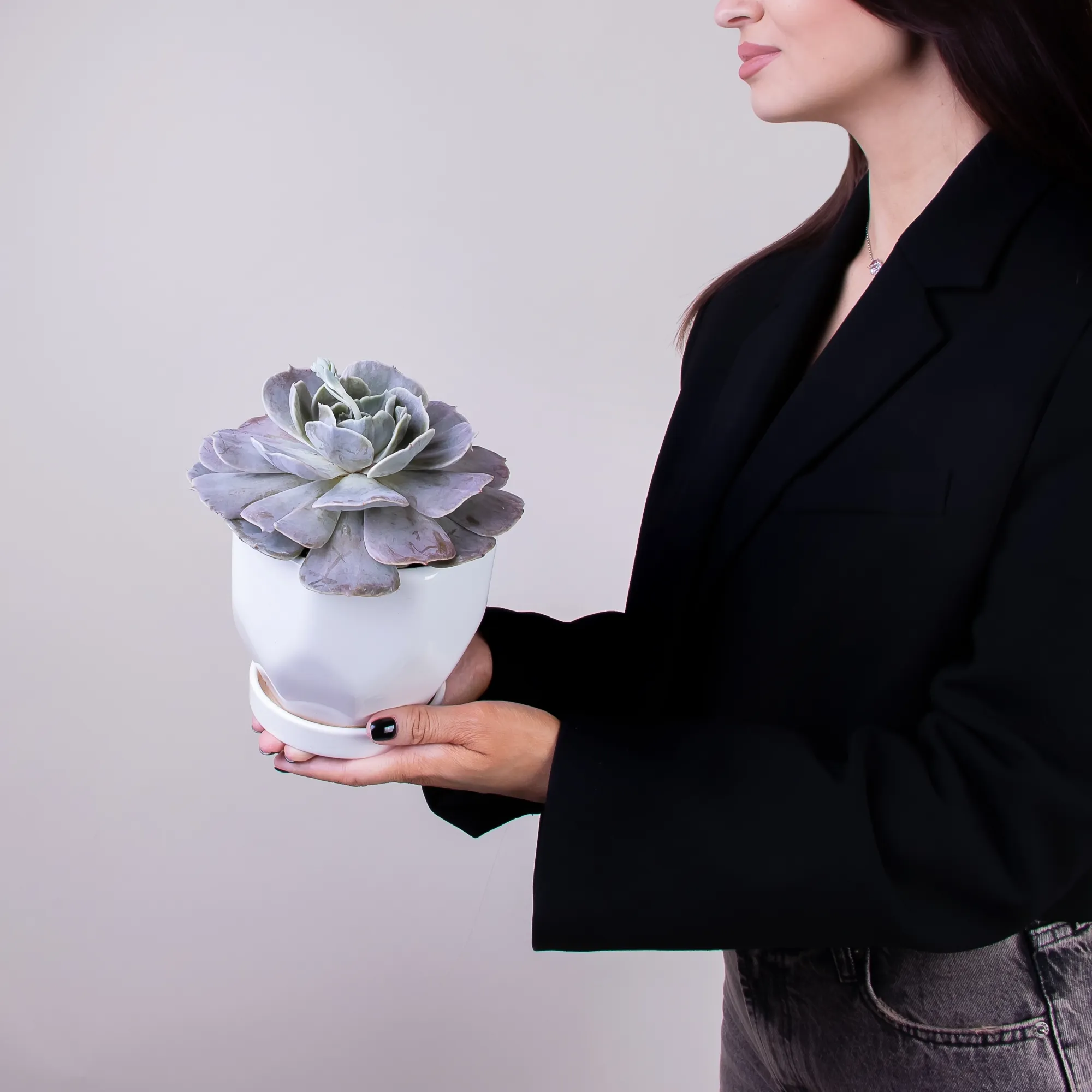 Как правило, растения доставляются в техническом пластиковом горшке от поставщика. Если в наименовании указано «в керамике/цинке», то в эту стоимость входит декоративное кашпо.