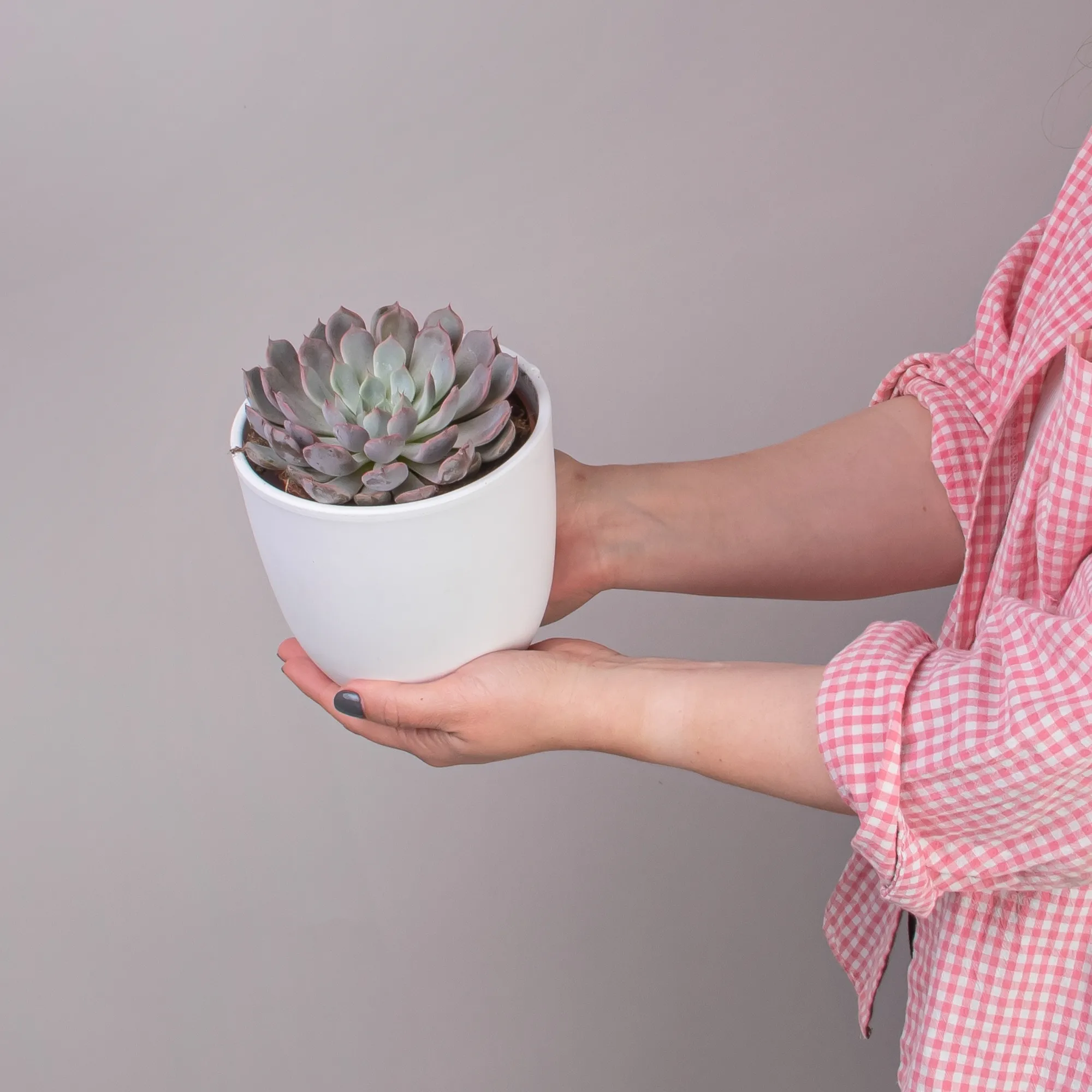 Как правило, растения доставляются в техническом пластиковом горшке от поставщика. Если в наименовании указано «в керамике/цинке», то в эту стоимость входит декоративное кашпо.
