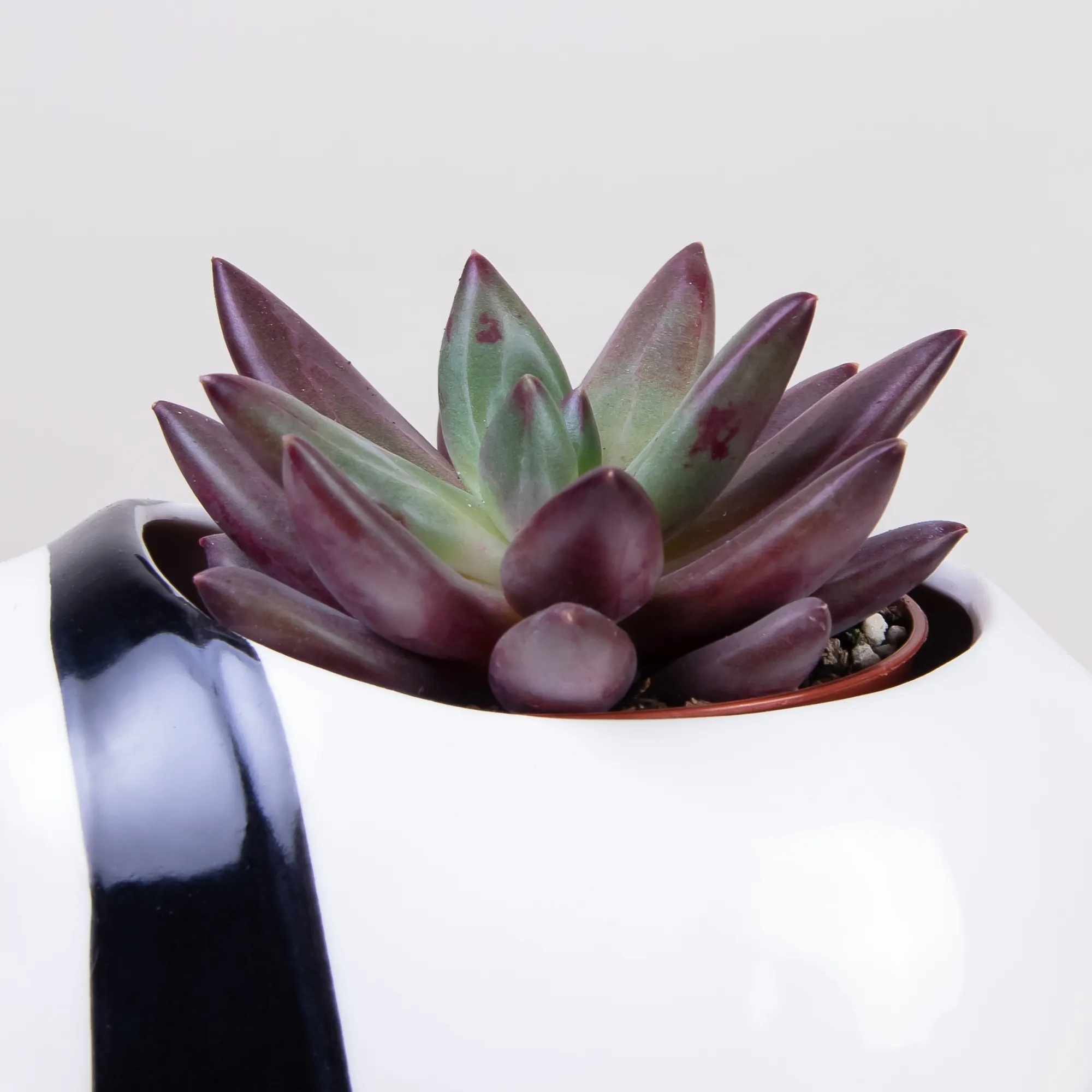 Как правило, растения доставляются в техническом пластиковом горшке от поставщика. Если в наименовании указано «в керамике/цинке», то в эту стоимость входит декоративное кашпо.