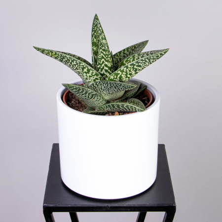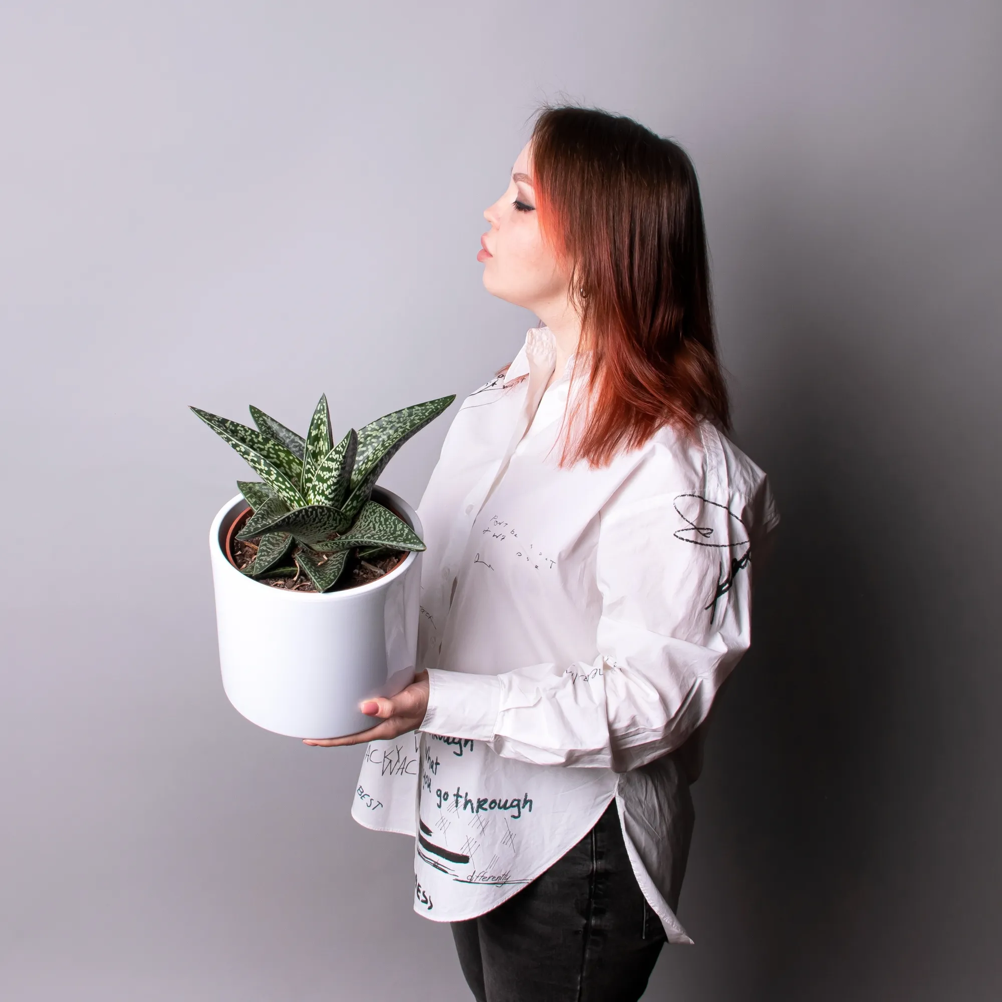 Как правило, растения доставляются в техническом пластиковом горшке от поставщика. Если в наименовании указано «в керамике/цинке», то в эту стоимость входит декоративное кашпо.