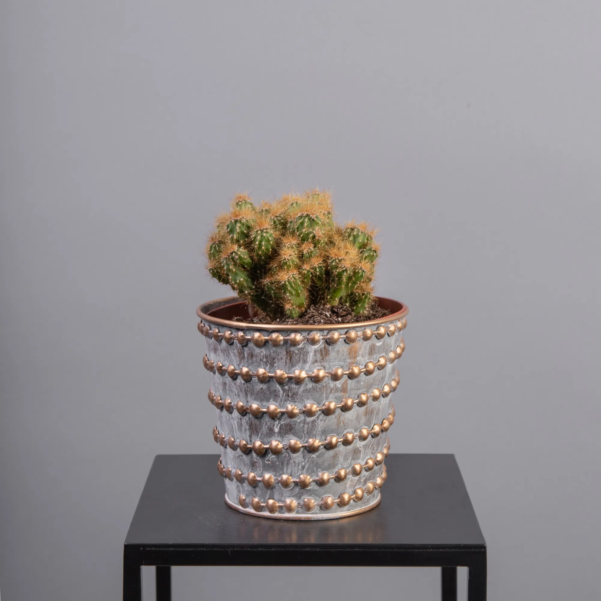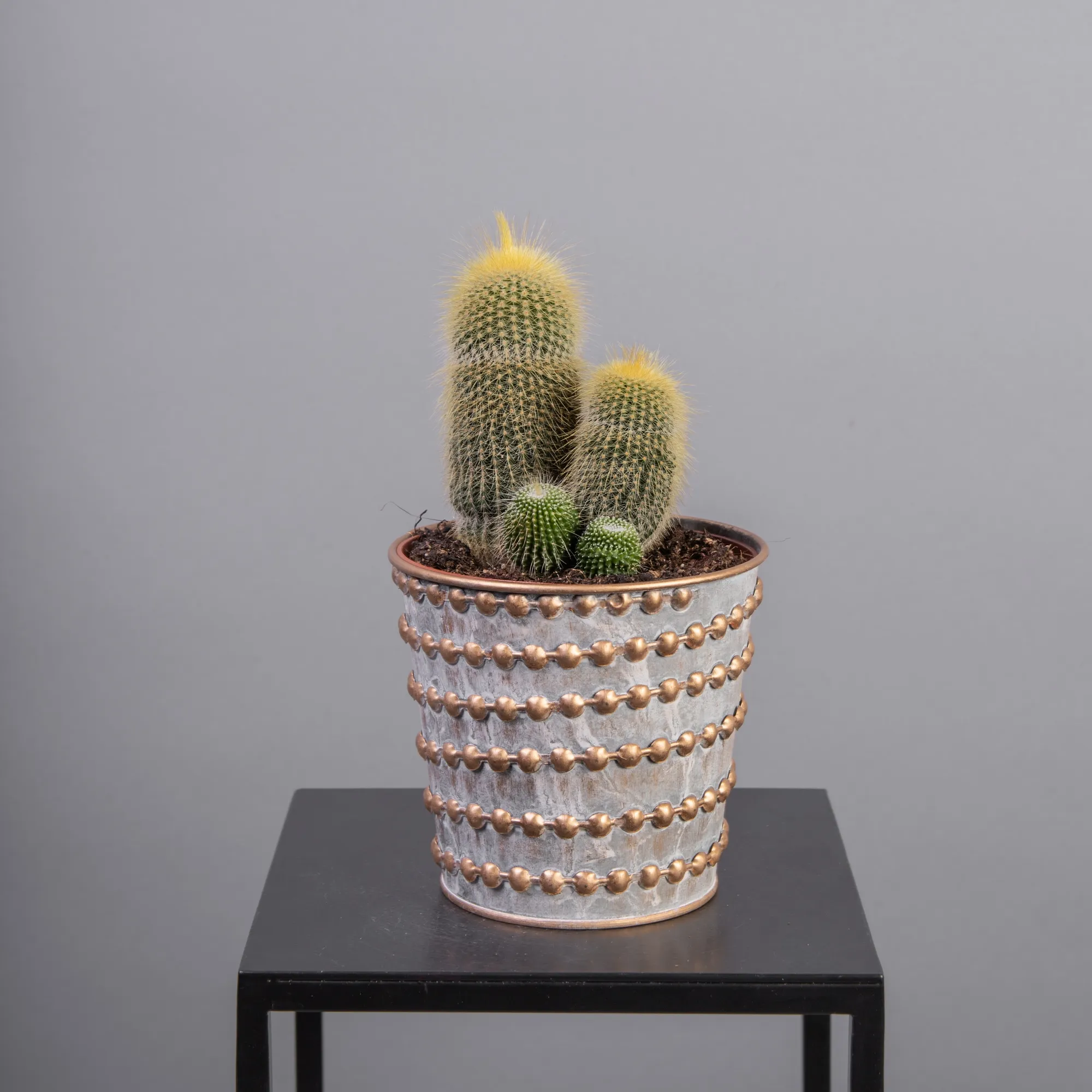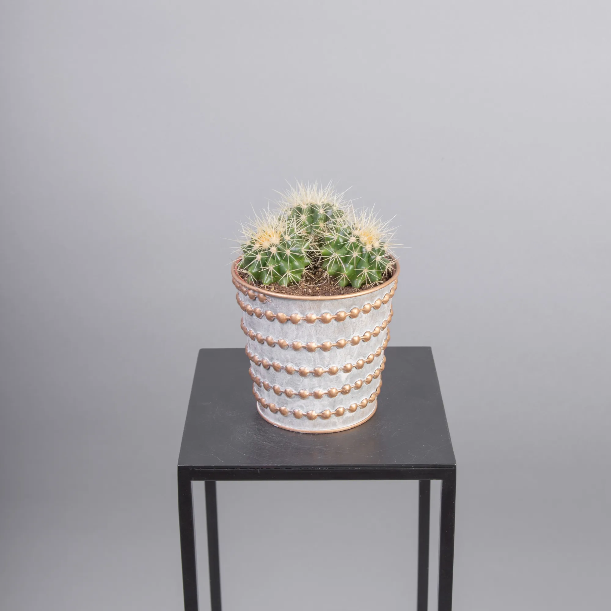 Как правило, растения доставляются в техническом пластиковом горшке от поставщика. Если в наименовании указано «в керамике/цинке», то в эту стоимость входит декоративное кашпо.