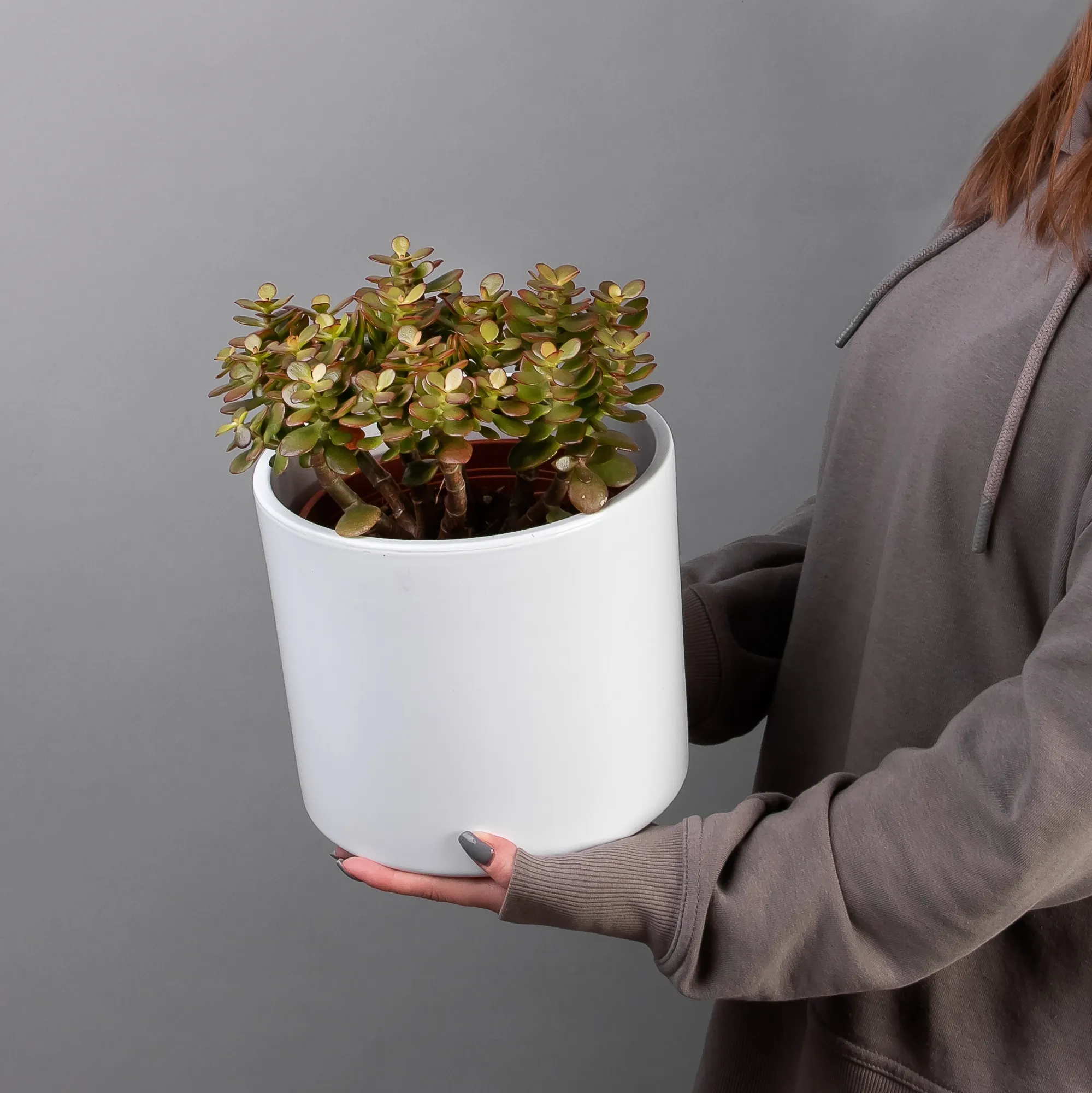 Как правило, растения доставляются в техническом пластиковом горшке от поставщика. Если в наименовании указано «в керамике/цинке», то в эту стоимость входит декоративное кашпо.