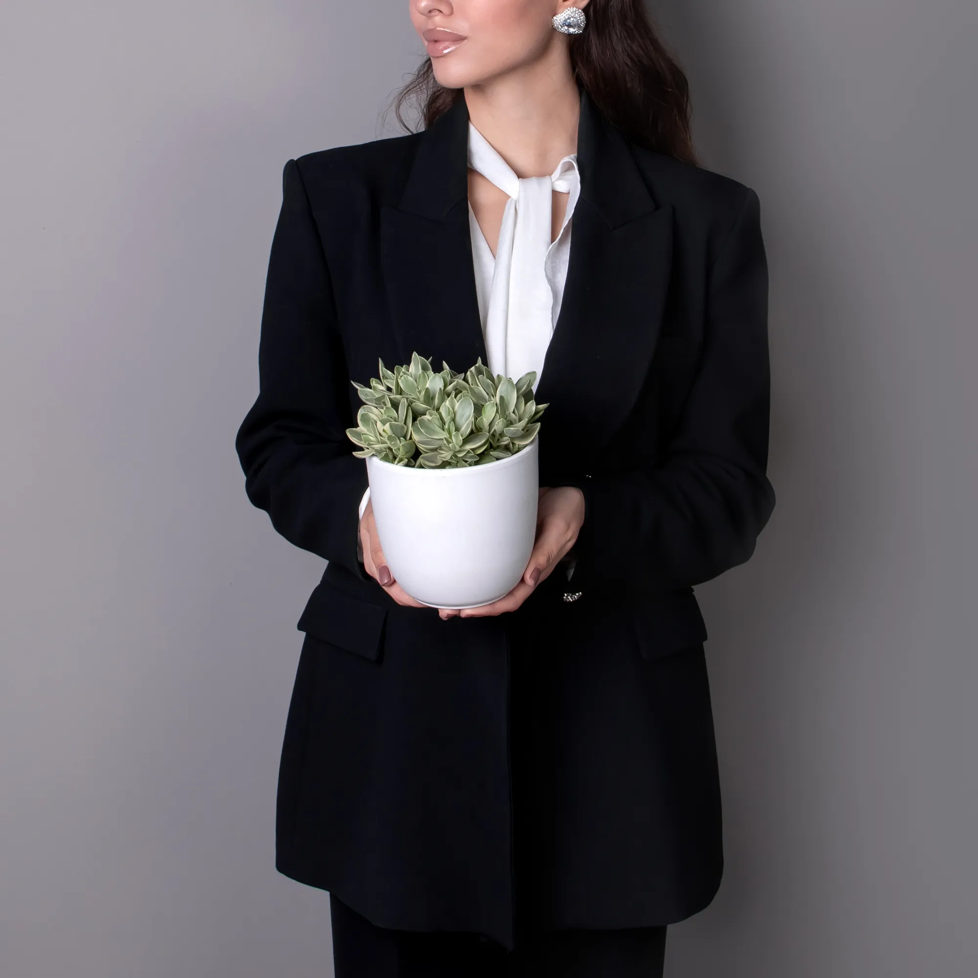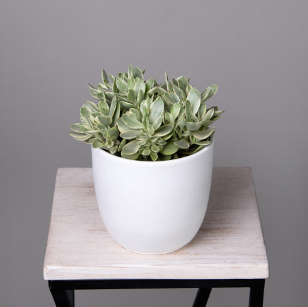 Как правило, растения доставляются в техническом пластиковом горшке от поставщика. Если в наименовании указано «в керамике/цинке», то в эту стоимость входит декоративное кашпо.