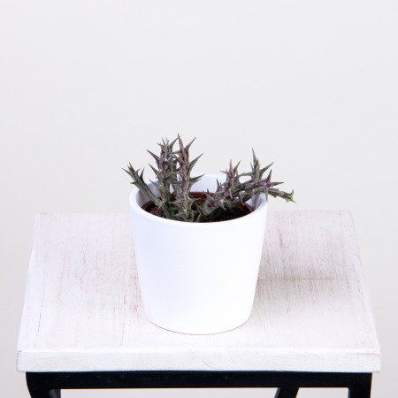 Как правило, растения доставляются в техническом пластиковом горшке от поставщика. Если в наименовании указано «в керамике/цинке», то в эту стоимость входит декоративное кашпо.