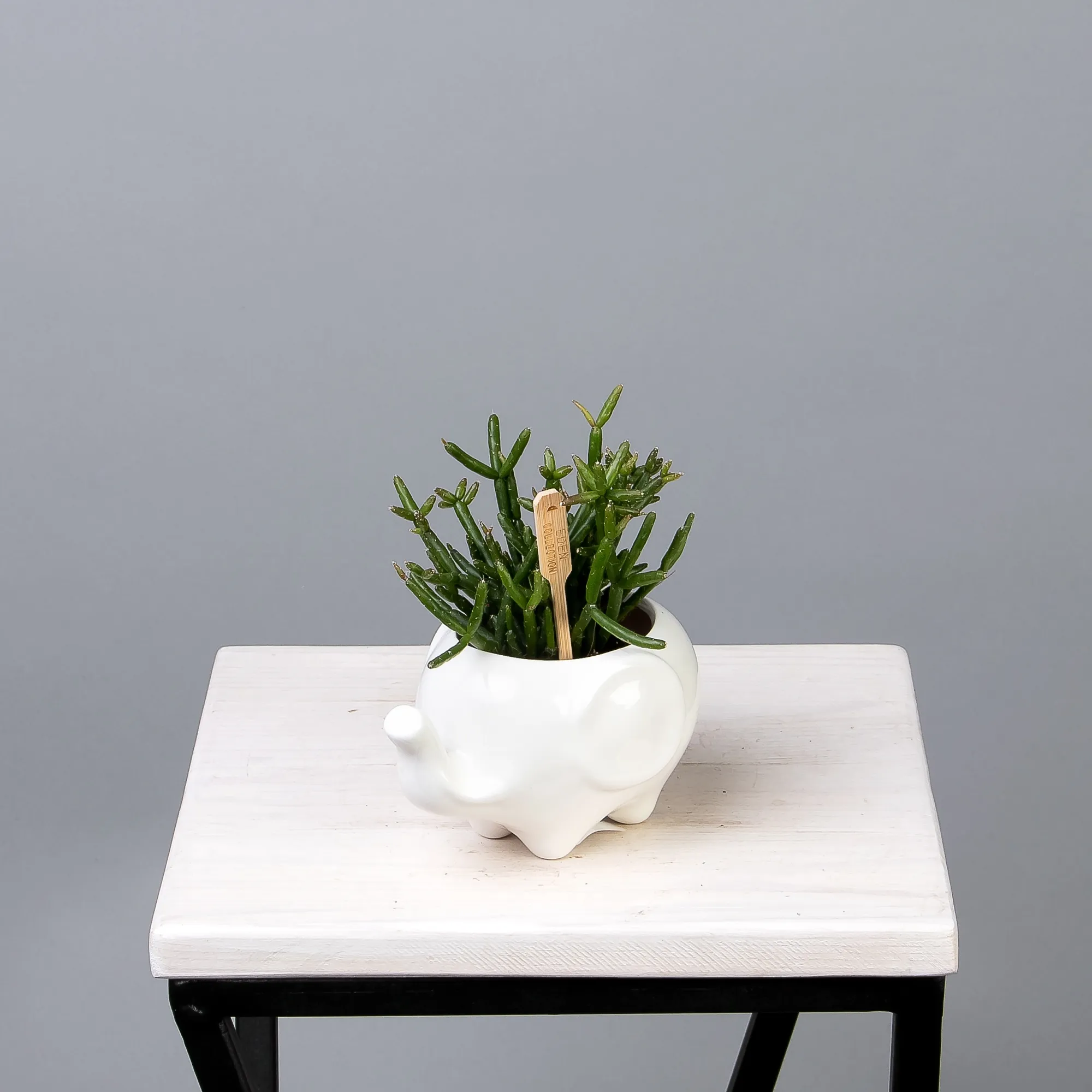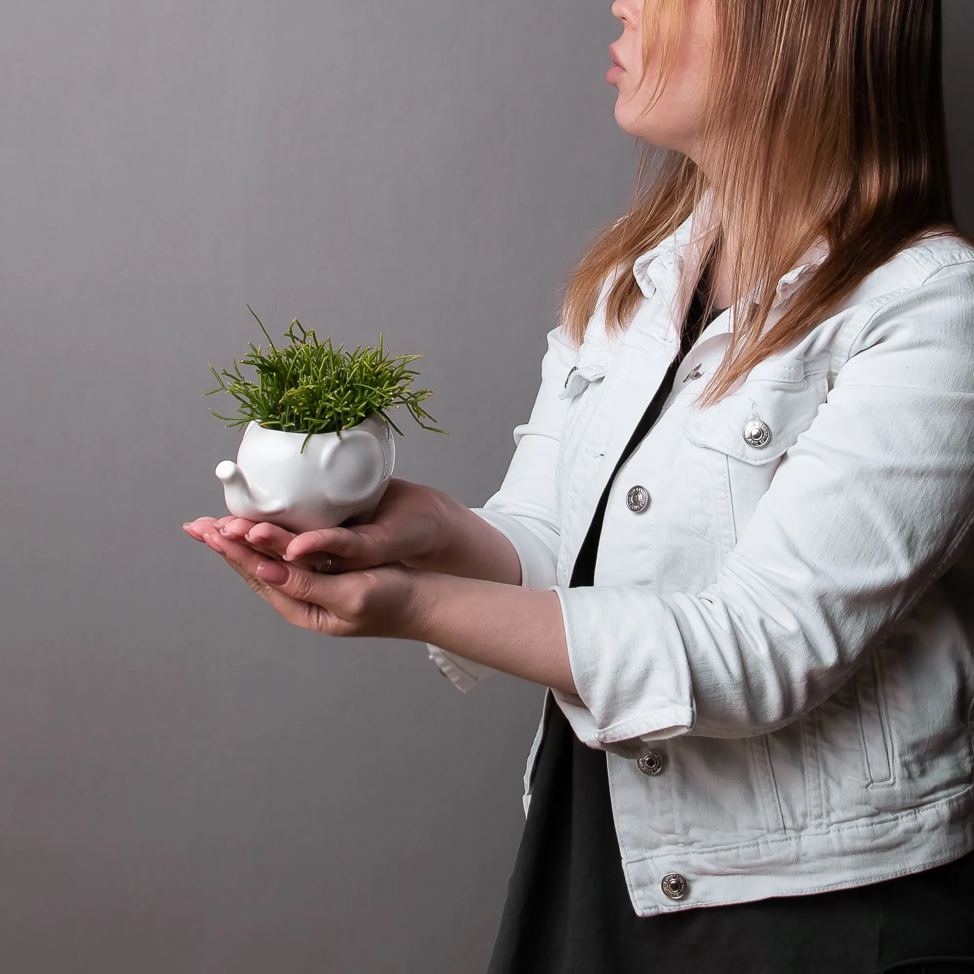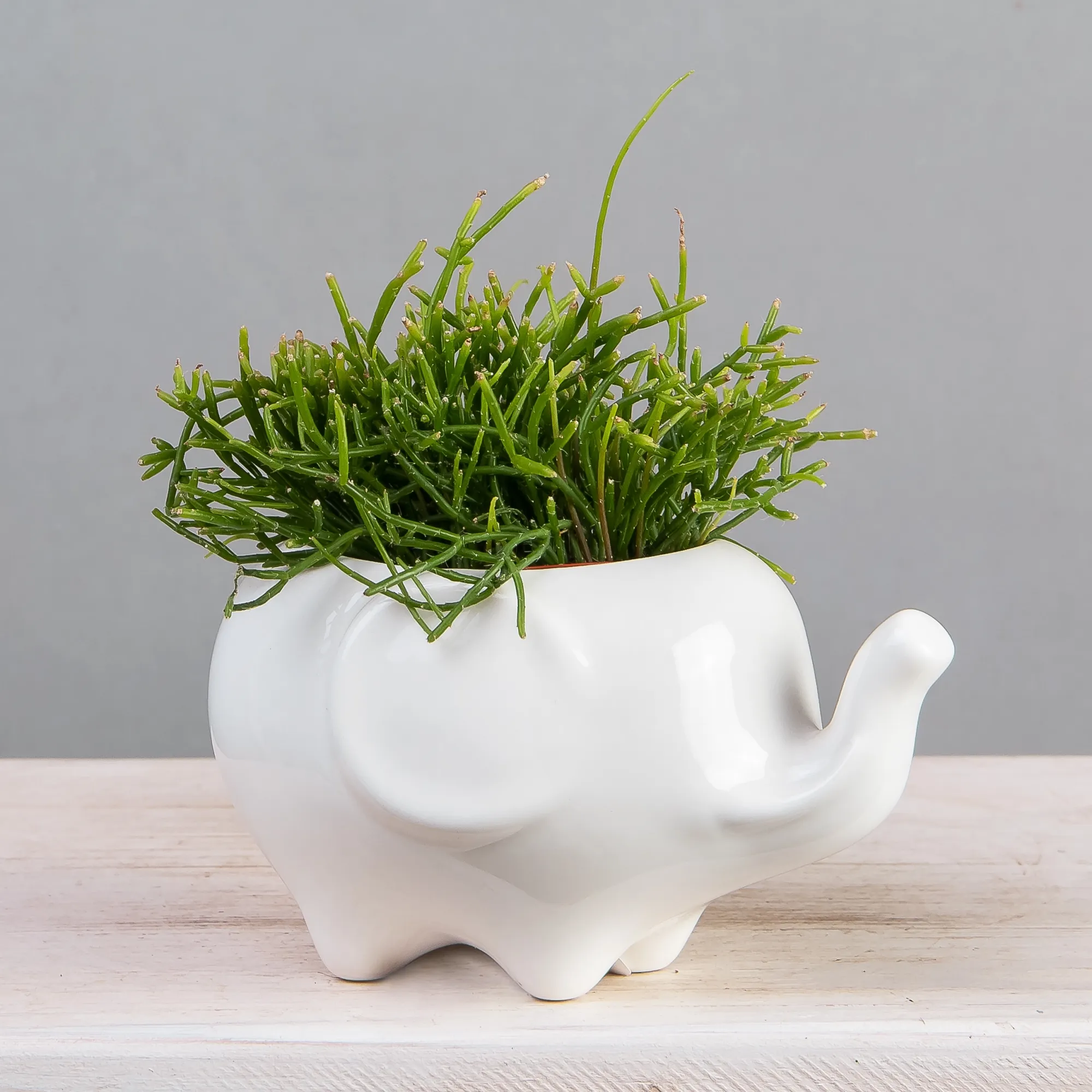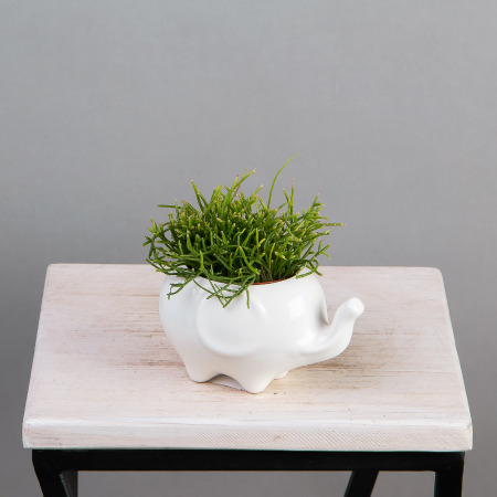 Как правило, растения доставляются в техническом пластиковом горшке от поставщика. Если в наименовании указано «в керамике/цинке», то в эту стоимость входит декоративное кашпо.