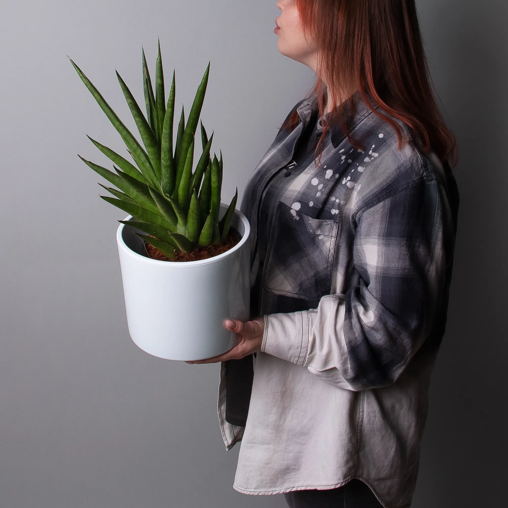 Как правило, растения доставляются в техническом пластиковом горшке от поставщика. Если в наименовании указано «в керамике/цинке», то в эту стоимость входит декоративное кашпо.