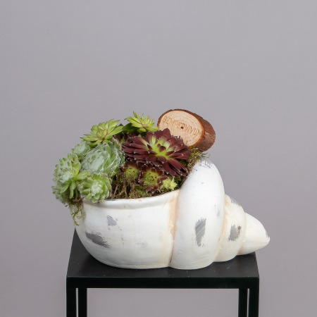 Как правило, растения доставляются в техническом пластиковом горшке от поставщика. Если в наименовании указано «в керамике/цинке», то в эту стоимость входит декоративное кашпо.