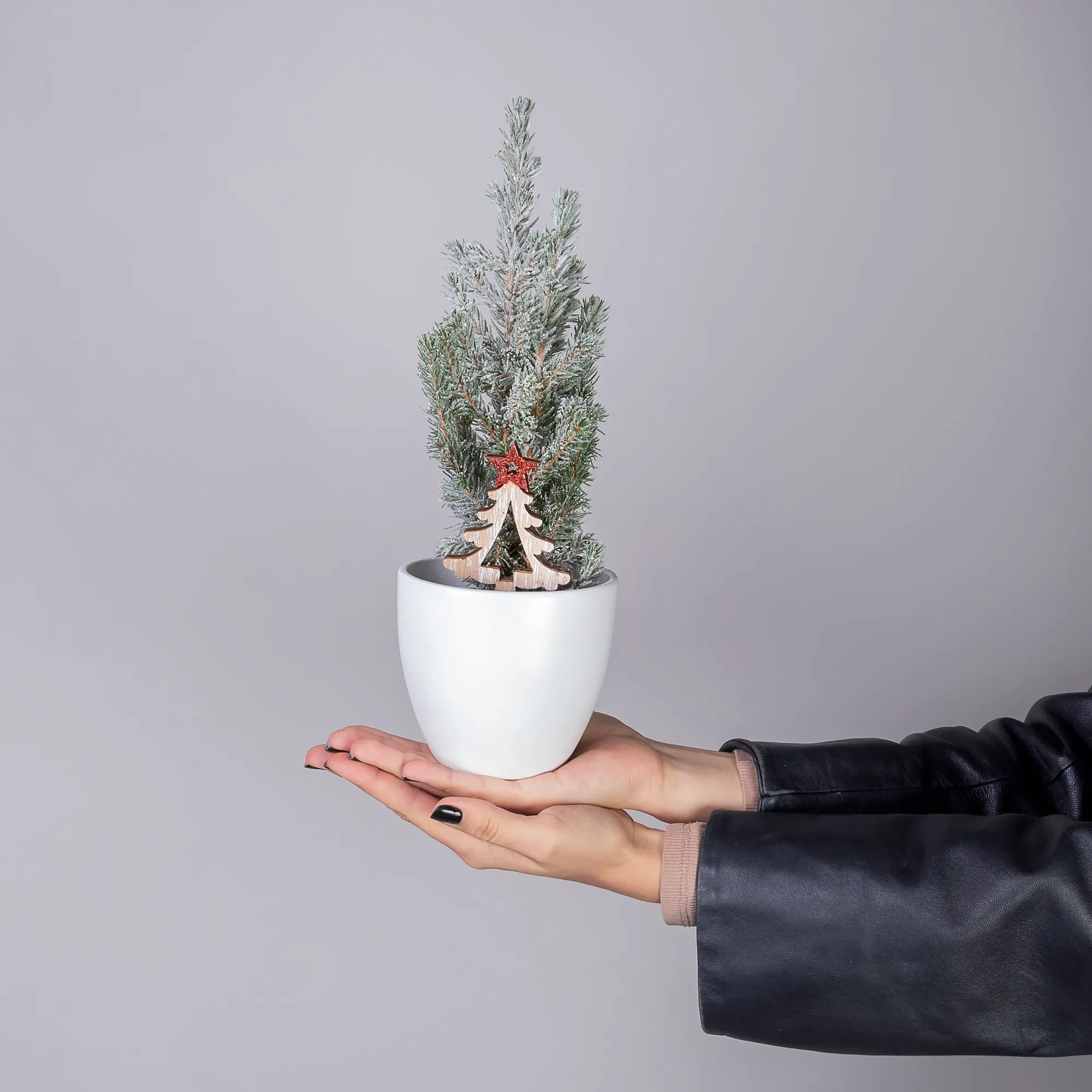 Как правило, растения доставляются в техническом пластиковом горшке от поставщика. Если в наименовании указано «в керамике/цинке», то в эту стоимость входит декоративное кашпо.