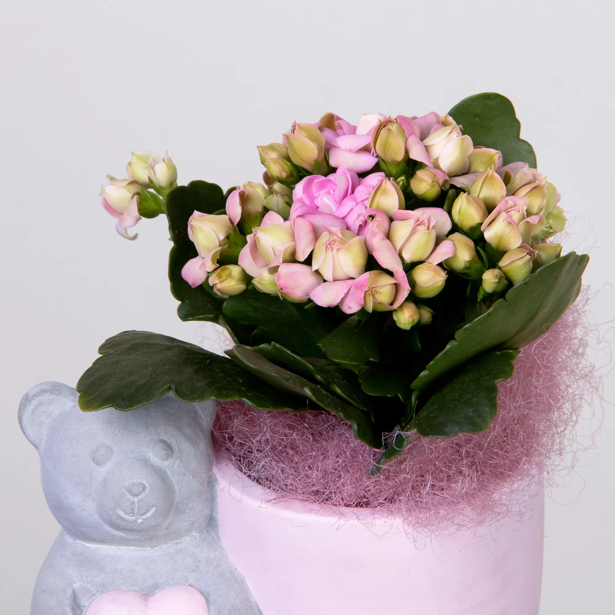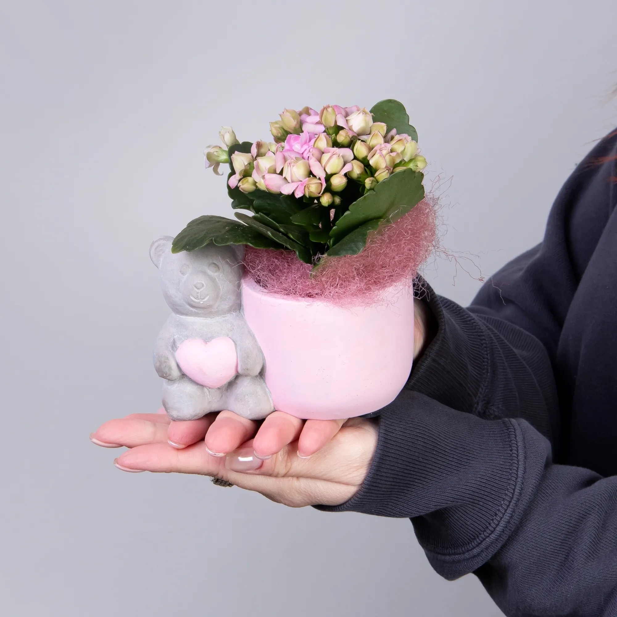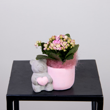 Цветущая Композиция в розовой керамике мишка BMVM1210