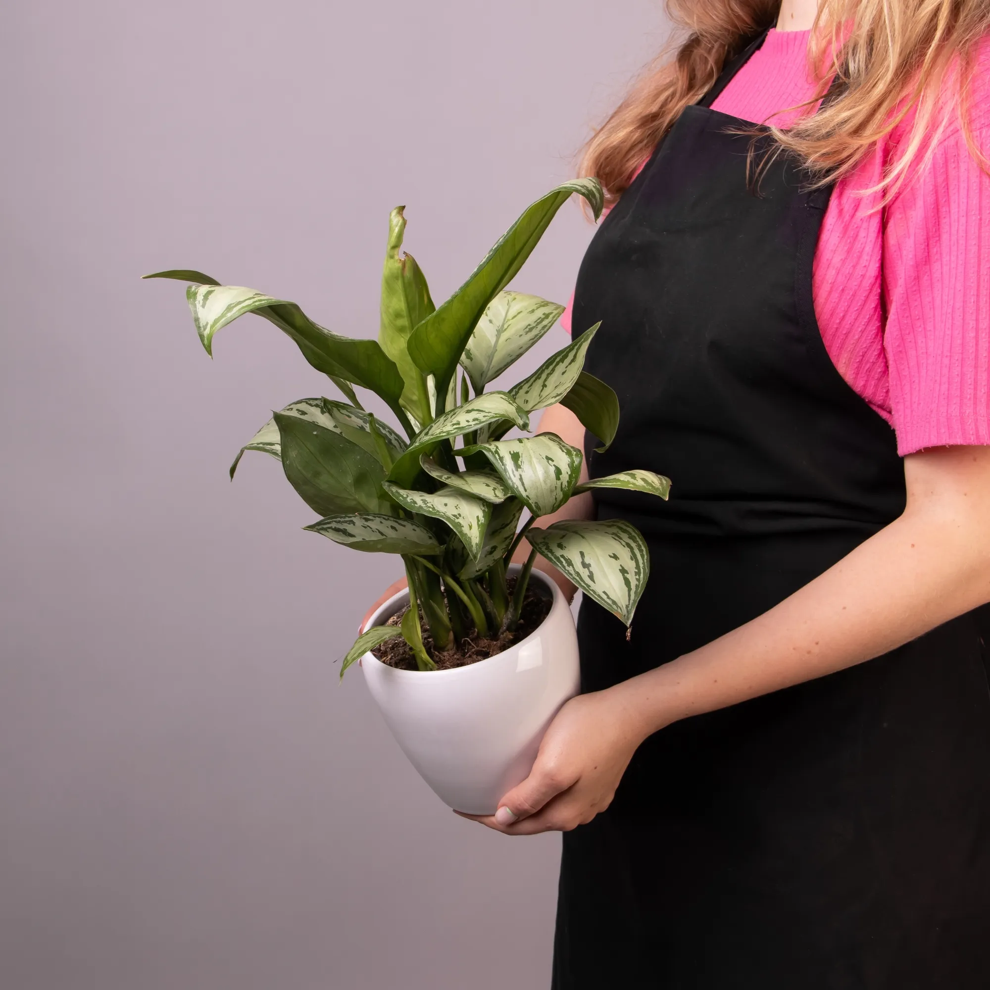 Как правило, растения доставляются в техническом пластиковом горшке от поставщика. Если в наименовании указано «в керамике/цинке», то в эту стоимость входит декоративное кашпо.