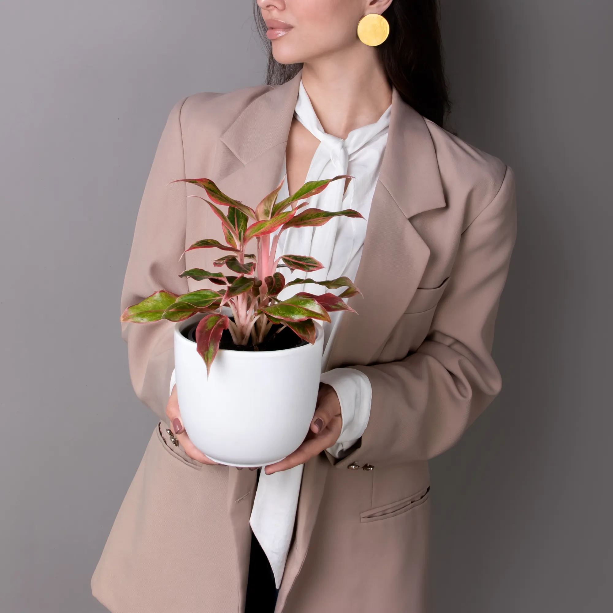 Как правило, растения доставляются в техническом пластиковом горшке от поставщика. Если в наименовании указано «в керамике/цинке», то в эту стоимость входит декоративное кашпо.