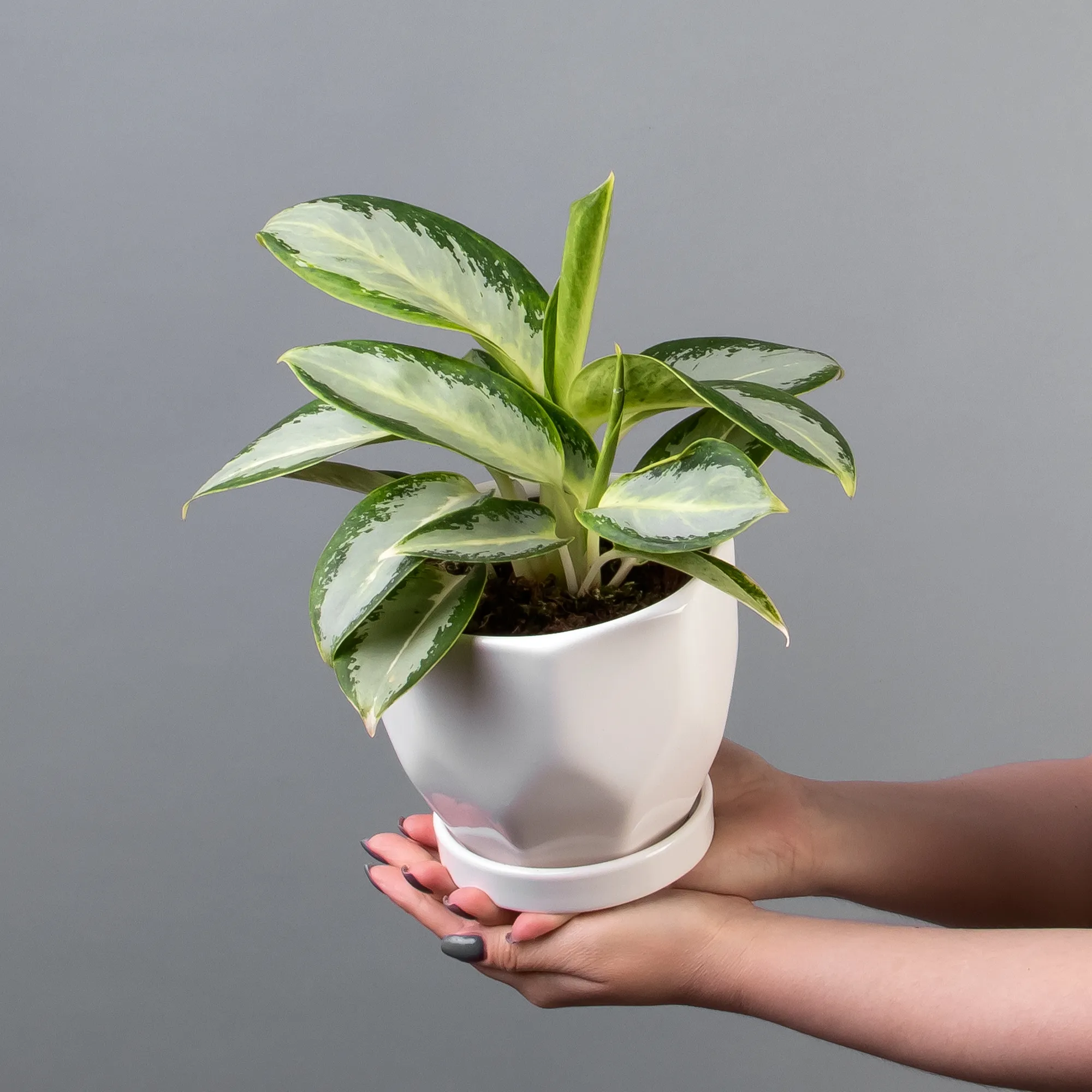 Как правило, растения доставляются в техническом пластиковом горшке от поставщика. Если в наименовании указано «в керамике/цинке», то в эту стоимость входит декоративное кашпо.