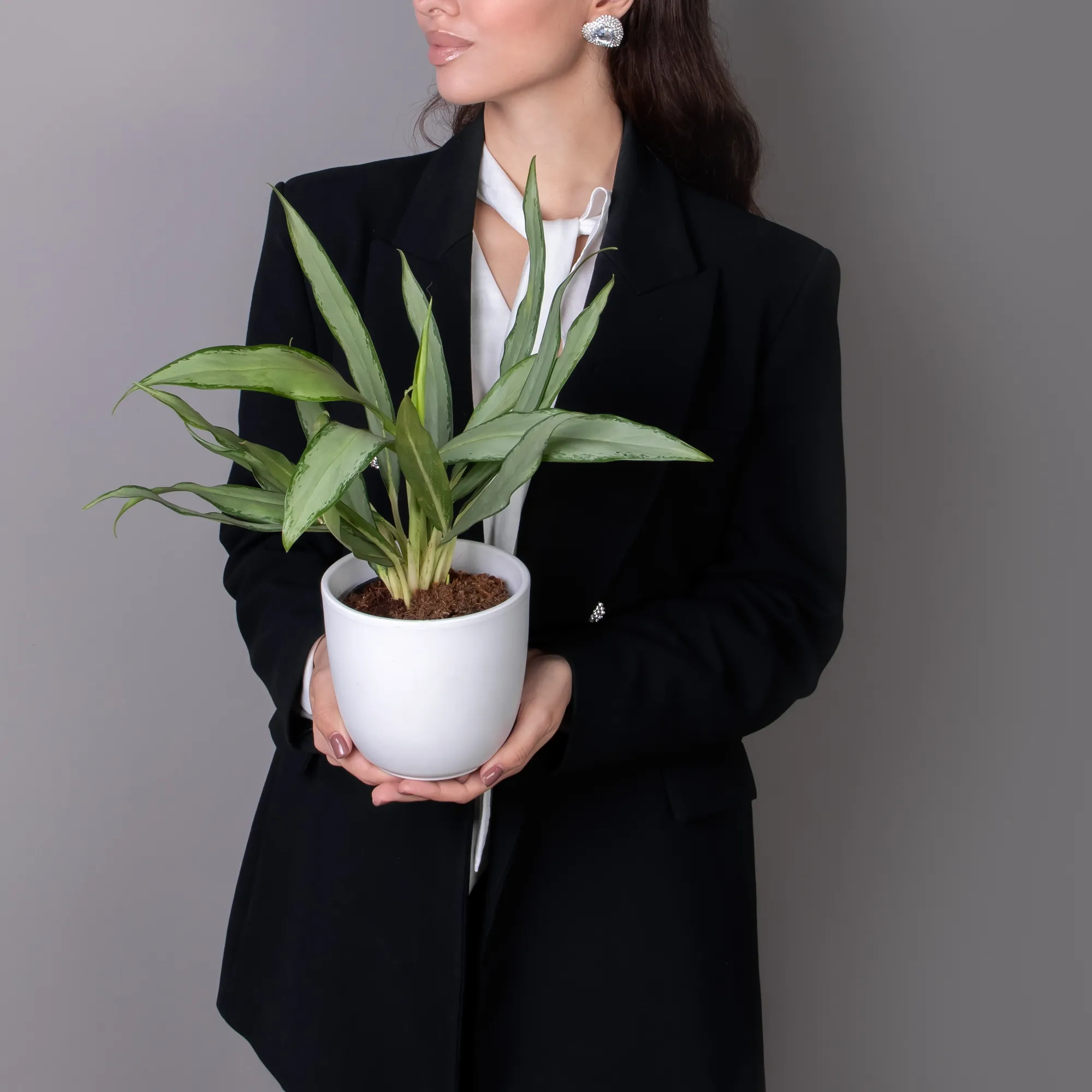 Как правило, растения доставляются в техническом пластиковом горшке от поставщика. Если в наименовании указано «в керамике/цинке», то в эту стоимость входит декоративное кашпо.