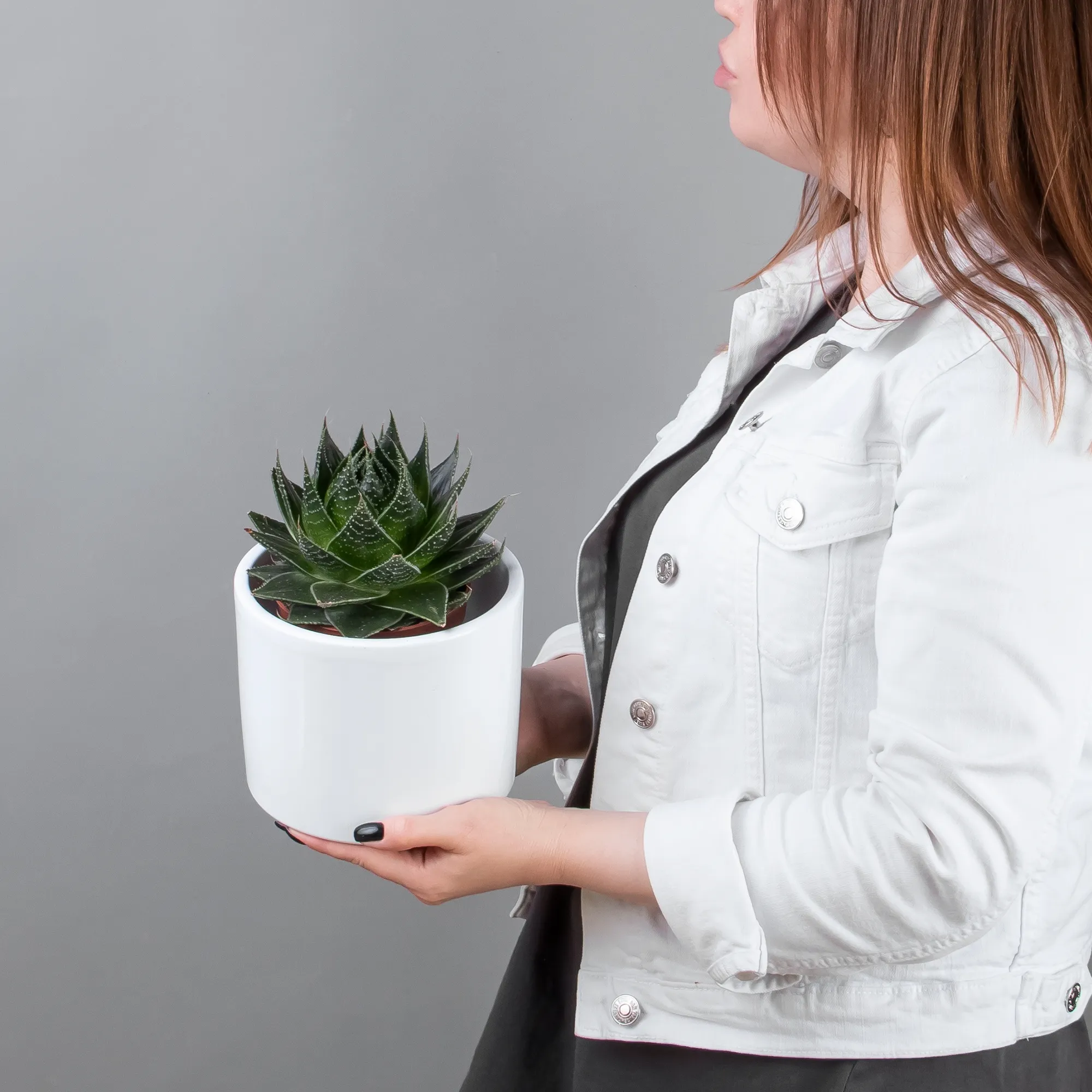 Как правило, растения доставляются в техническом пластиковом горшке от поставщика. Если в наименовании указано «в керамике/цинке», то в эту стоимость входит декоративное кашпо.