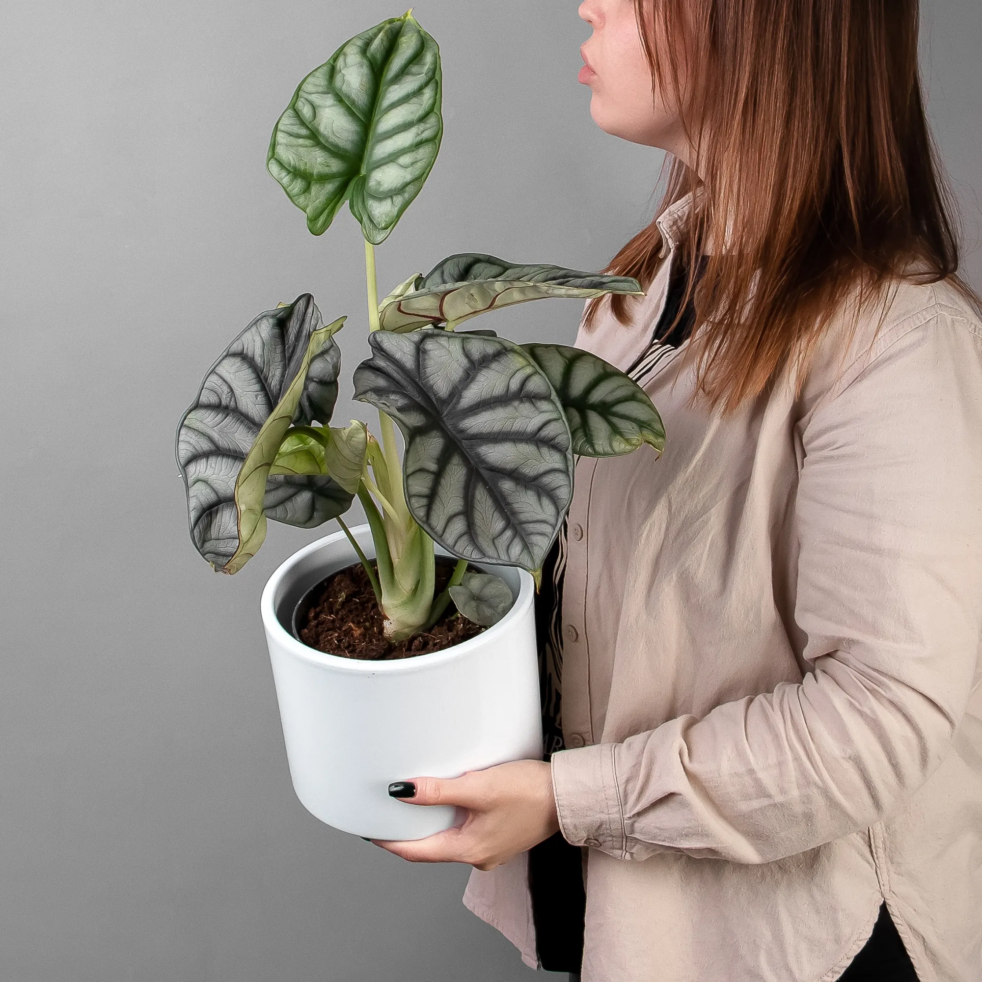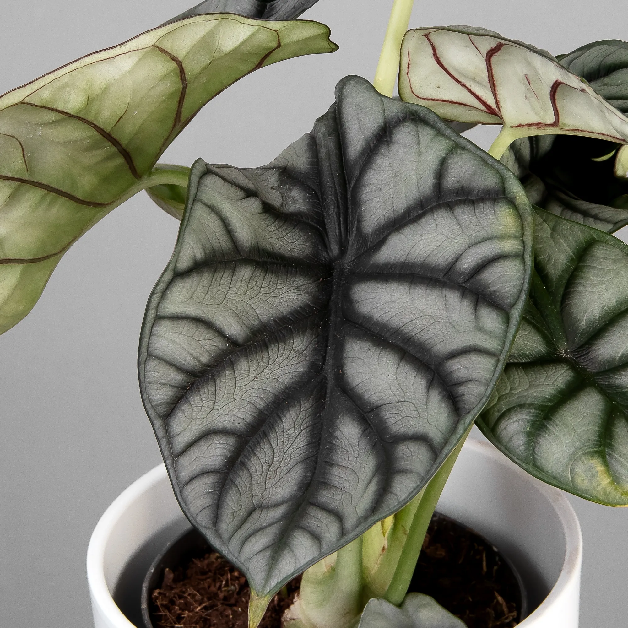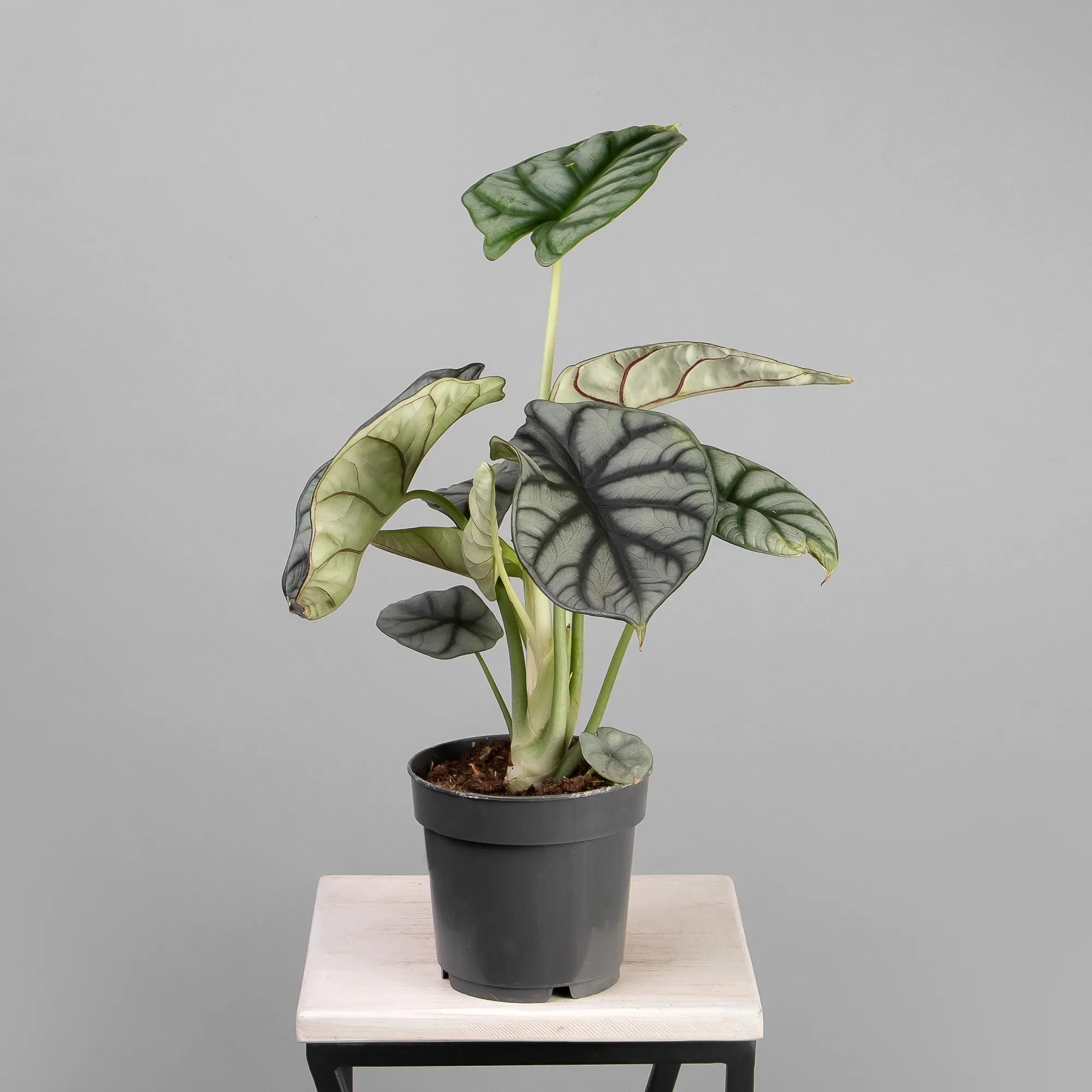 Алоказия Полли - растение с необыкновенными блестящими пестрыми листьями родом из Филиппин, Цейлона и Малайзии.