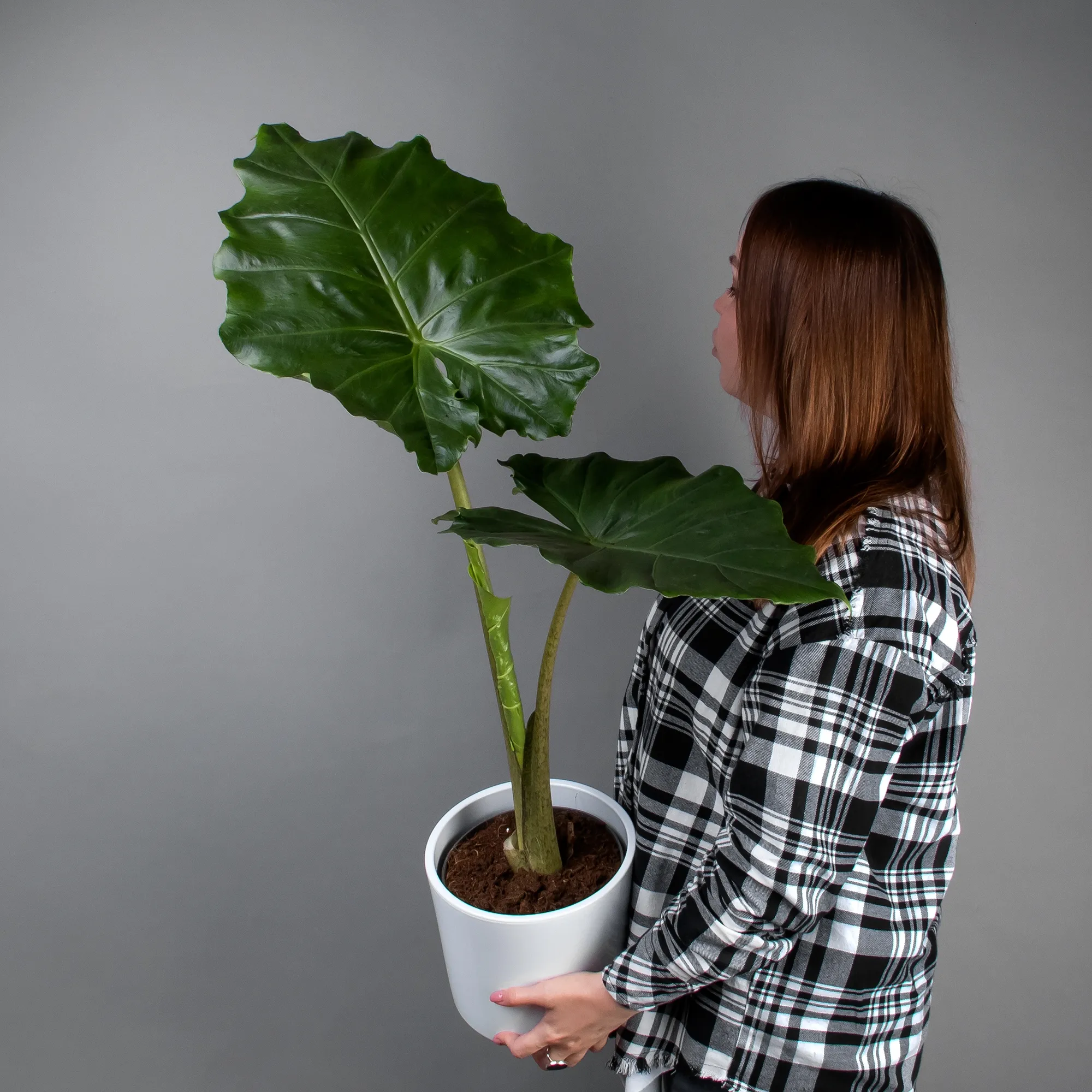 Алоказия Полли - растение с необыкновенными блестящими пестрыми листьями родом из Филиппин, Цейлона и Малайзии.
