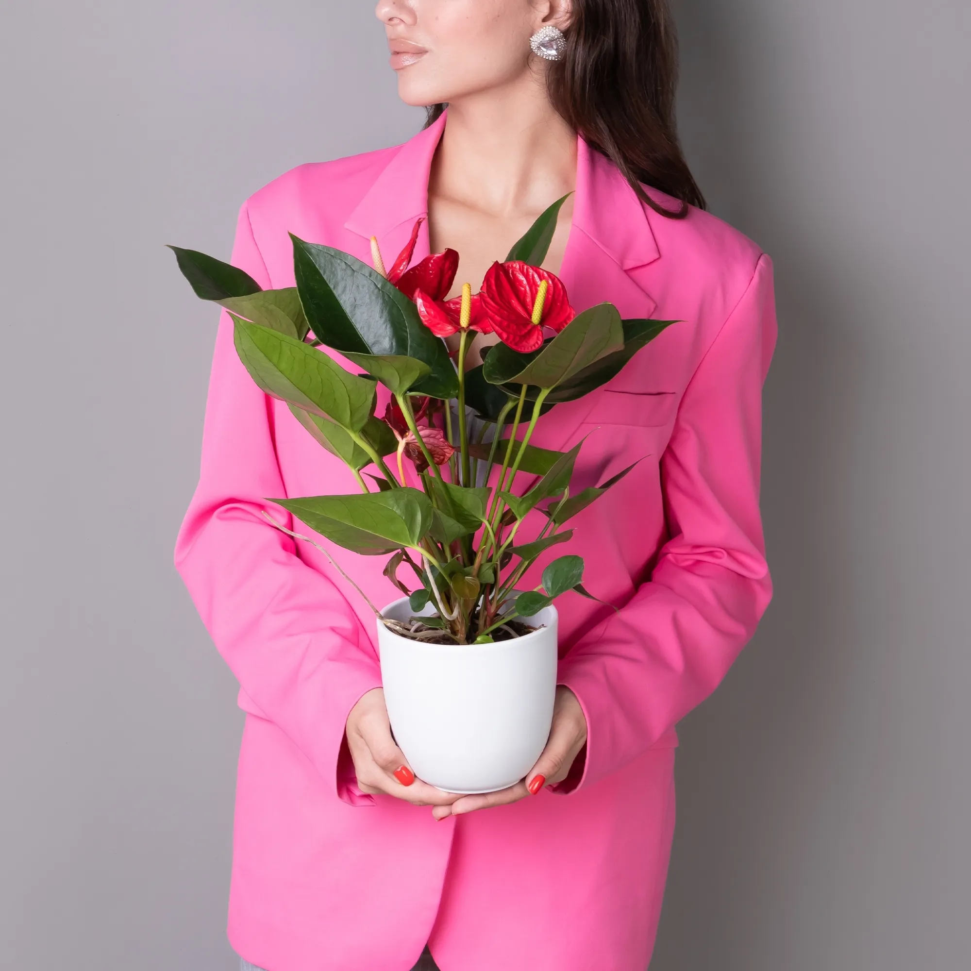 Как правило, растения доставляются в техническом пластиковом горшке от поставщика. Если в наименовании указано «в керамике/цинке», то в эту стоимость входит декоративное кашпо.